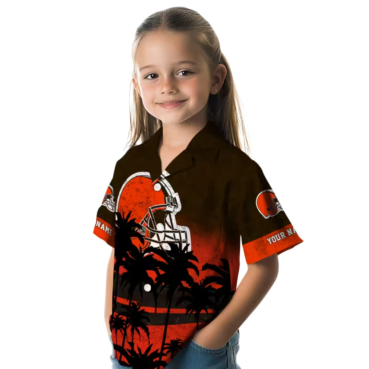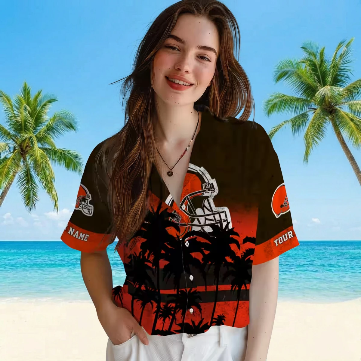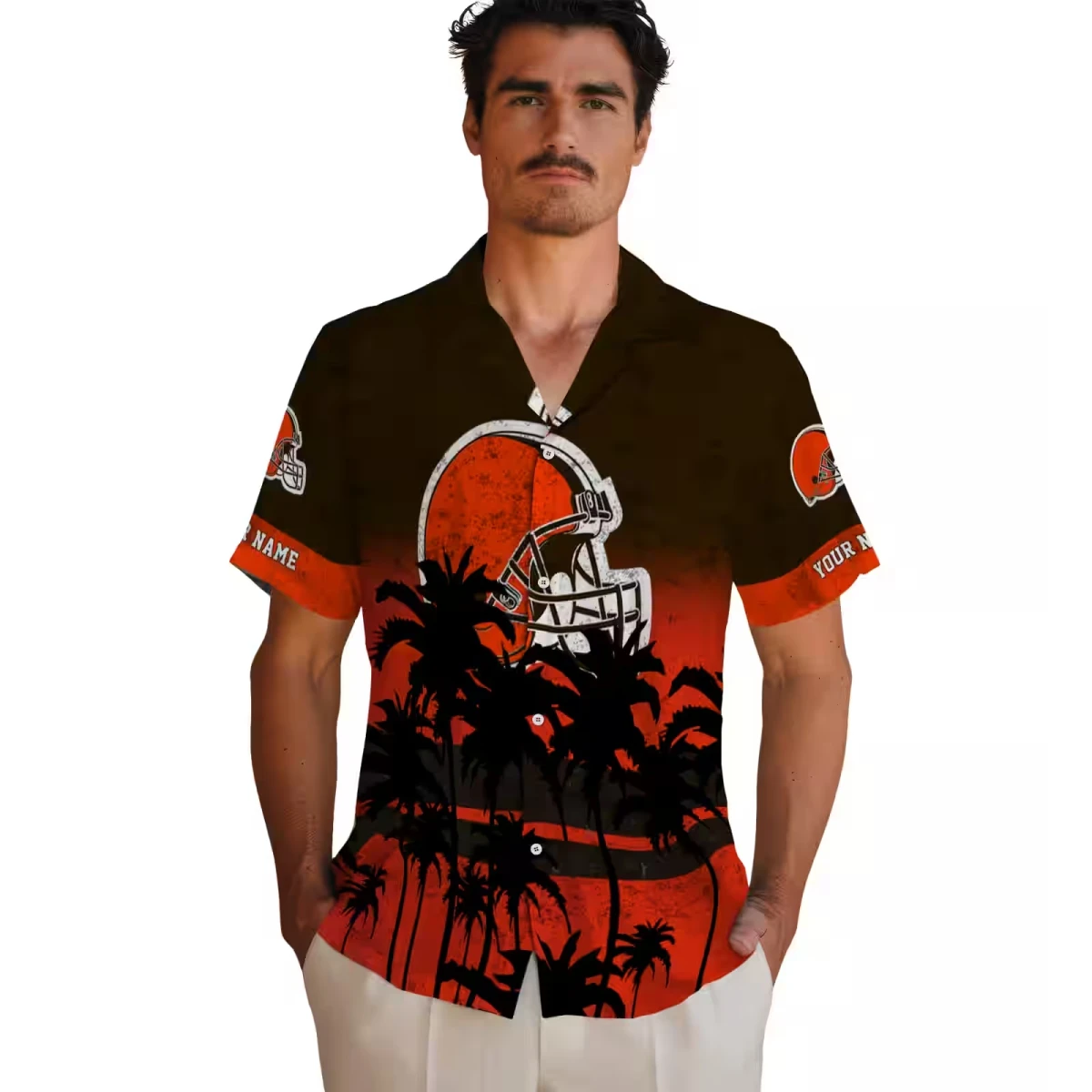 Cleveland Browns Hawaiian Shirt – Custom Sunset Pattern Brown Black, Casual Button Down For Men & Women