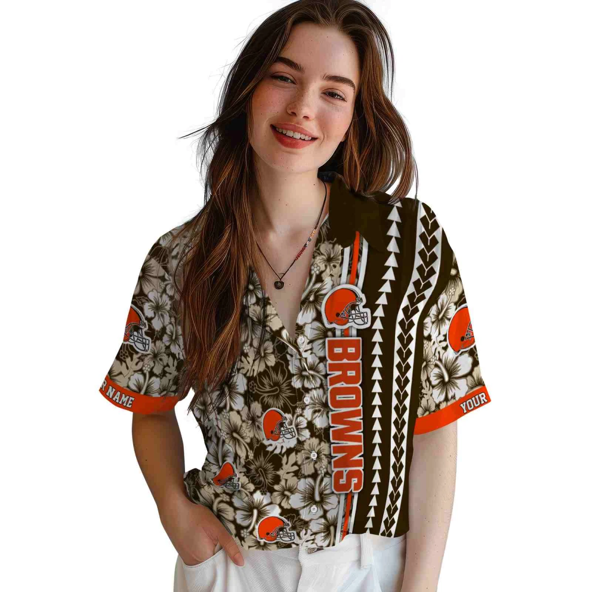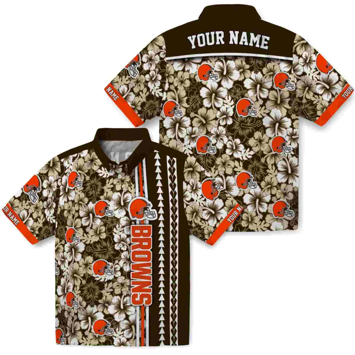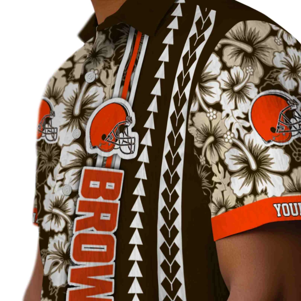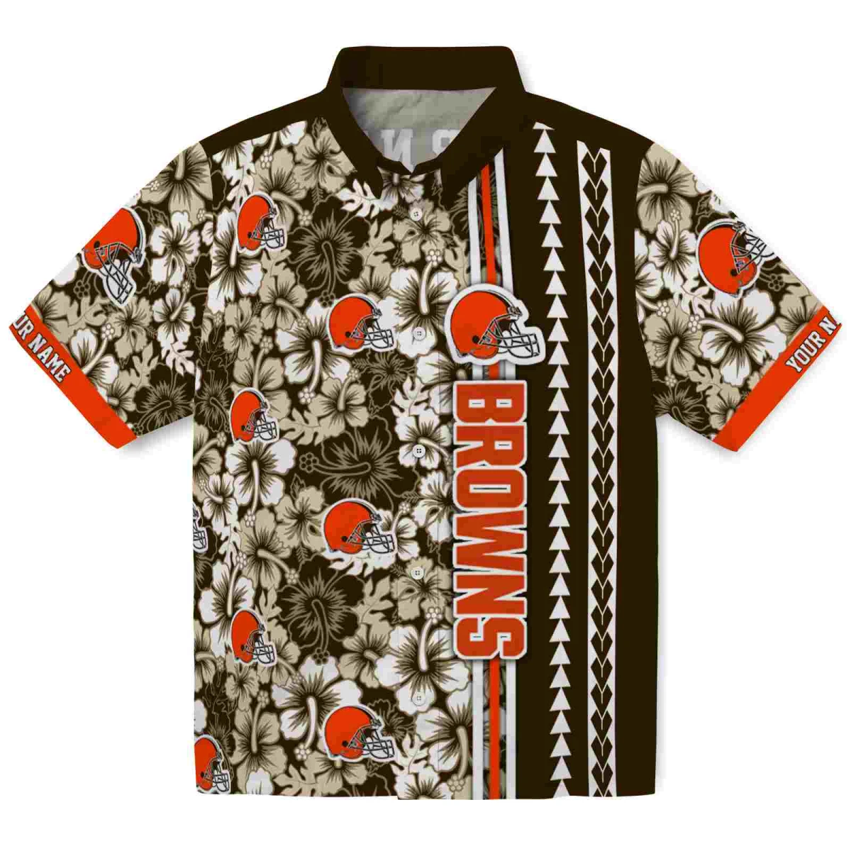 Cleveland Browns Hawaiian Shirt – Customized Hibiscus Arrows Brown White, Casual Button Down For Men & Women