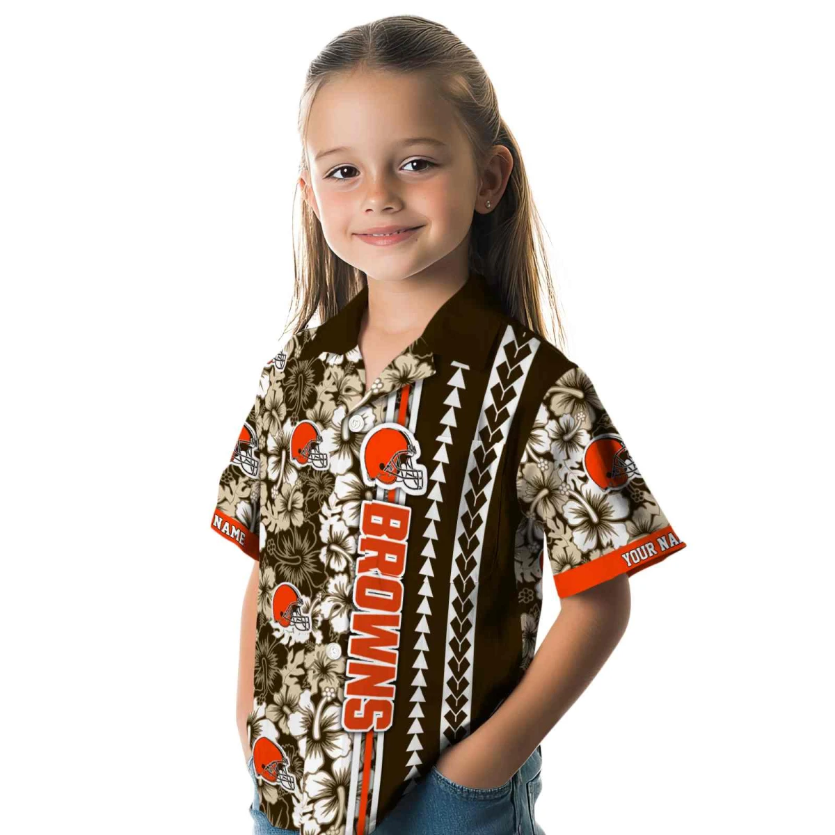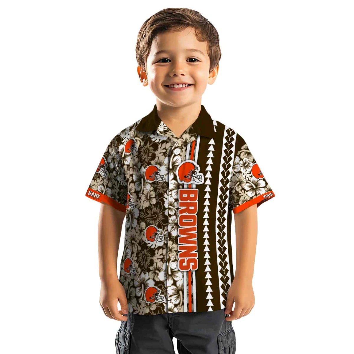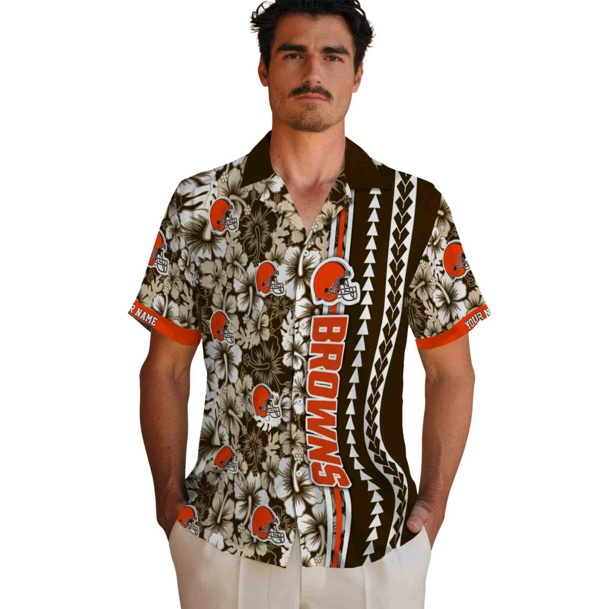 Cleveland Browns Hawaiian Shirt – Customized Hibiscus Arrows Brown White, Casual Button Down For Men & Women