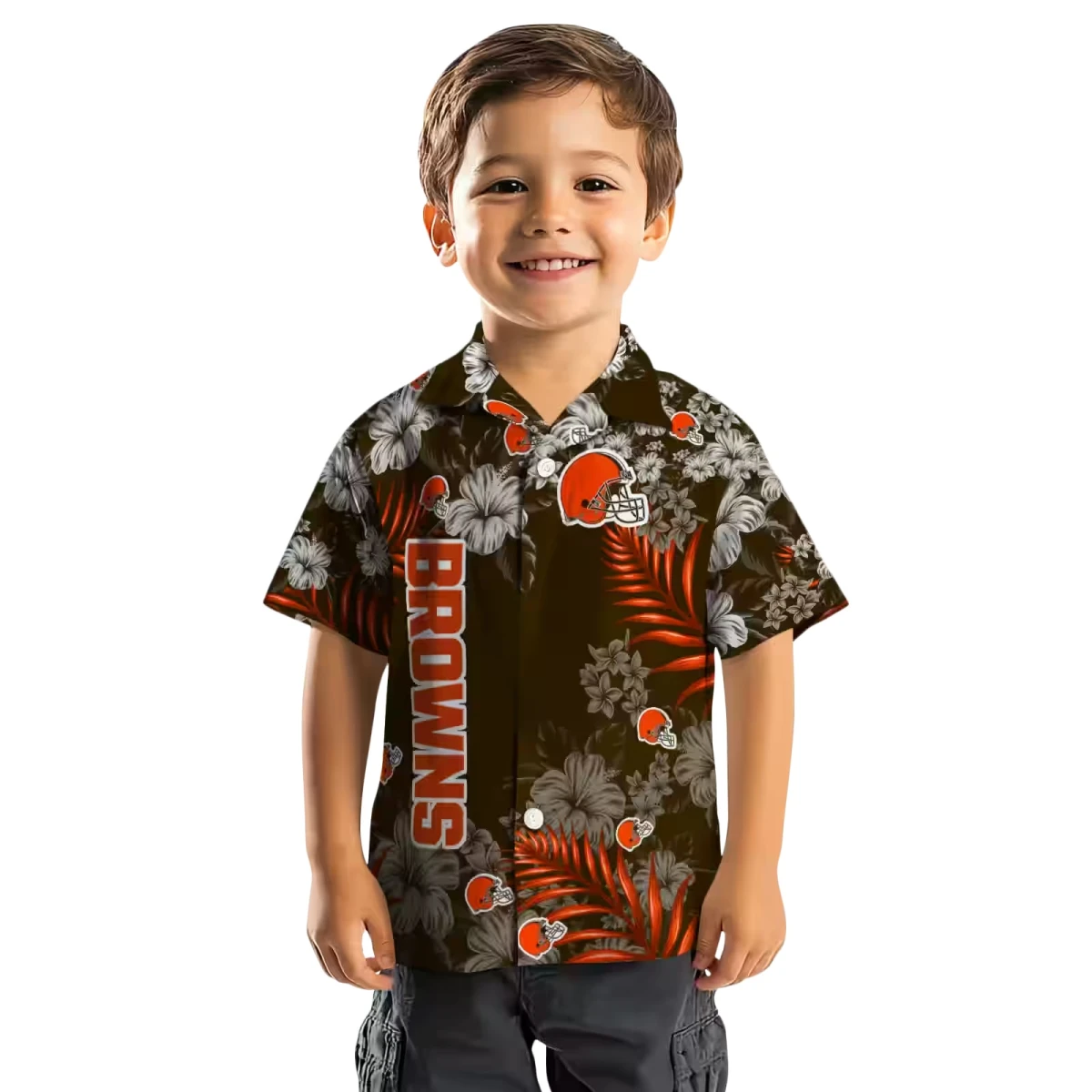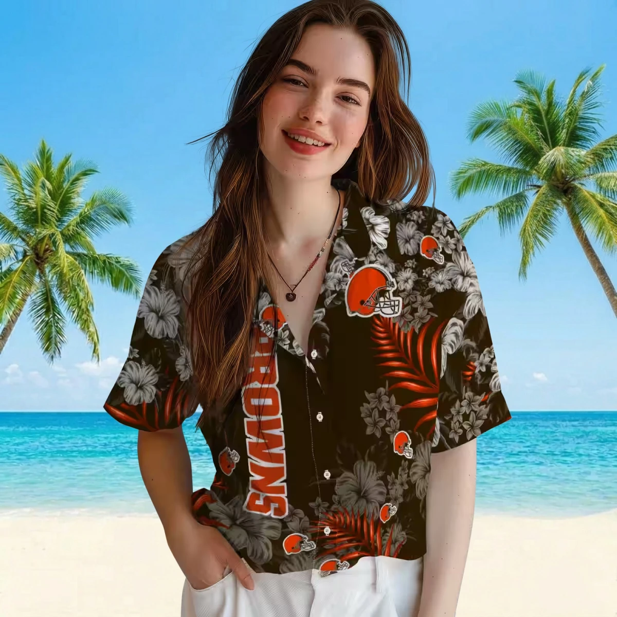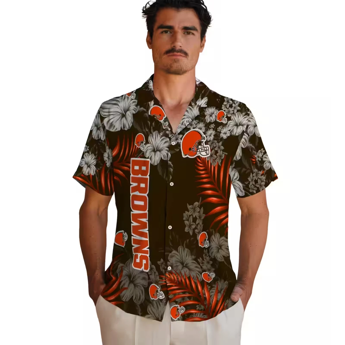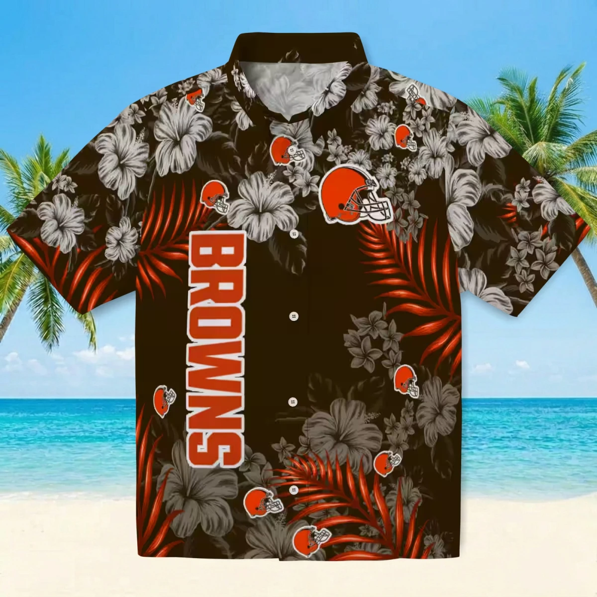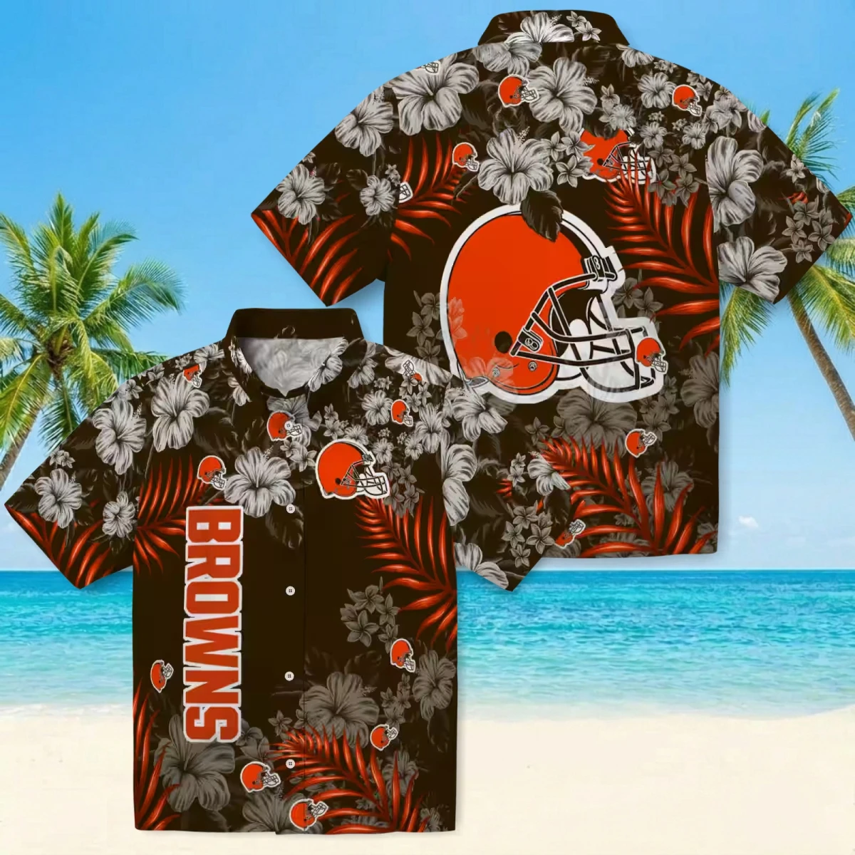 Cleveland Browns Hawaiian Shirt – Hibiscus Print Brown, Casual Button Down For Men & Women