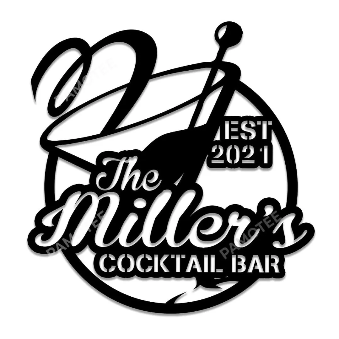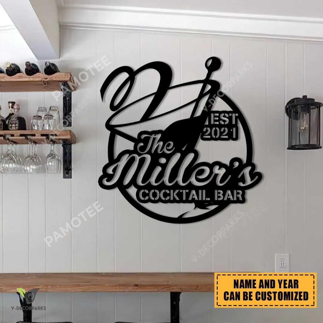 Cocktail Bar Custom Family Name Wall Hanging Art, Metal Pub Sign Decor, Many Sizes