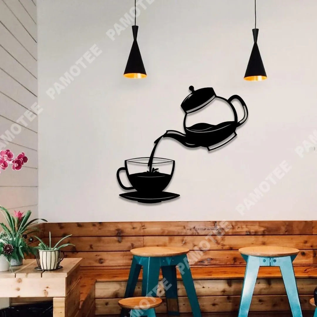 Pouring A Coffee Cup Bar Metal Wall Art, Steel Plaque