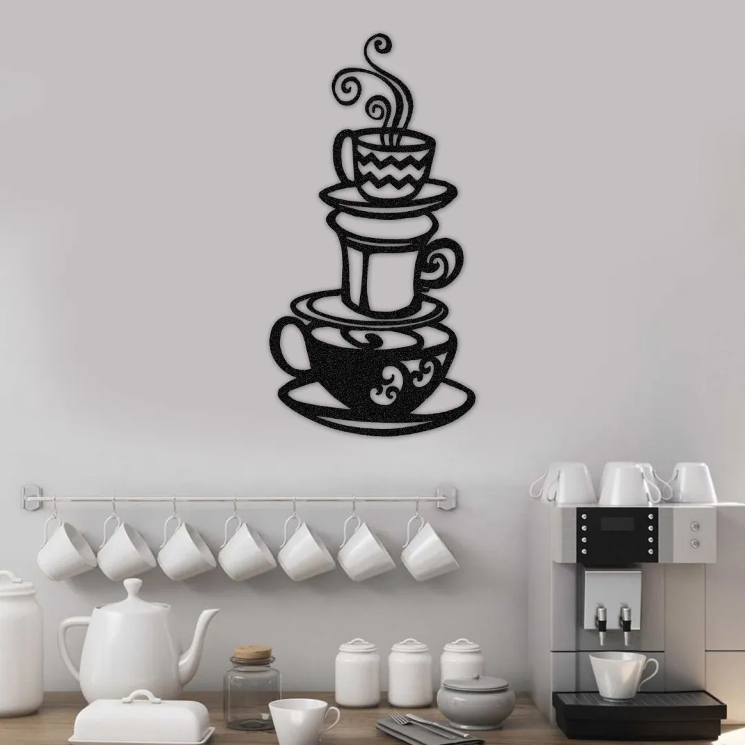 Rustic Coffee Cups Metal Bar Sign, Perfect Gift For Coffee Lovers