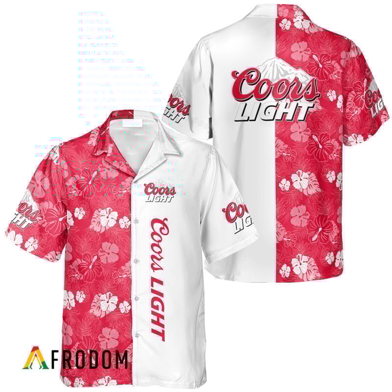 Coors Light Hawaiian Shirt For Men – Tropical Red & White Split – Summer Beach Vacation Outfit