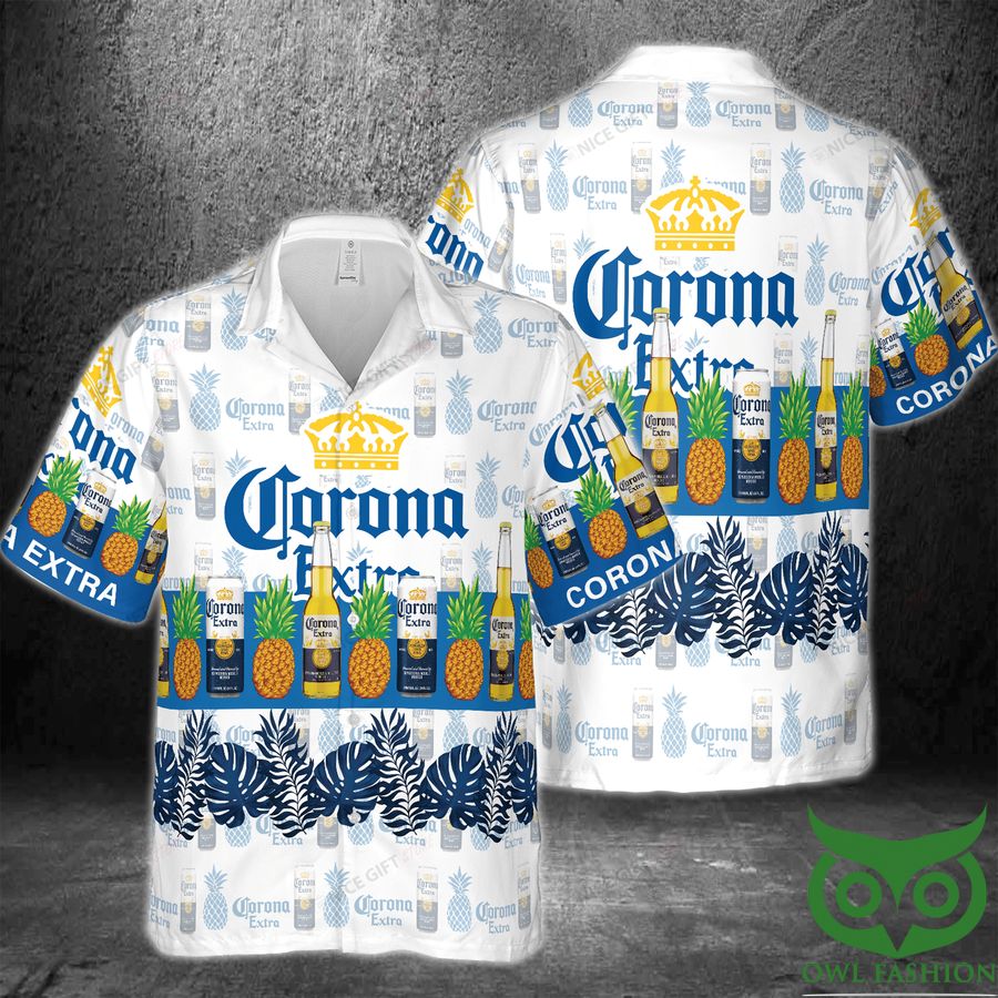 Corona Extra Hawaiian Shirt For Men – Pineapple Blue Leaf Pattern – Casual Streetwear Golf Outfit