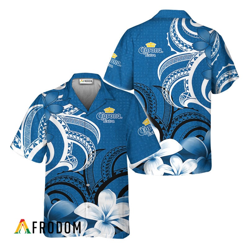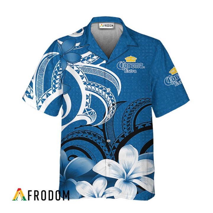 Corona Extra Hawaiian Shirt For Men – Polynesian Floral Spirit Blue – Summer Beach Vacation Gift