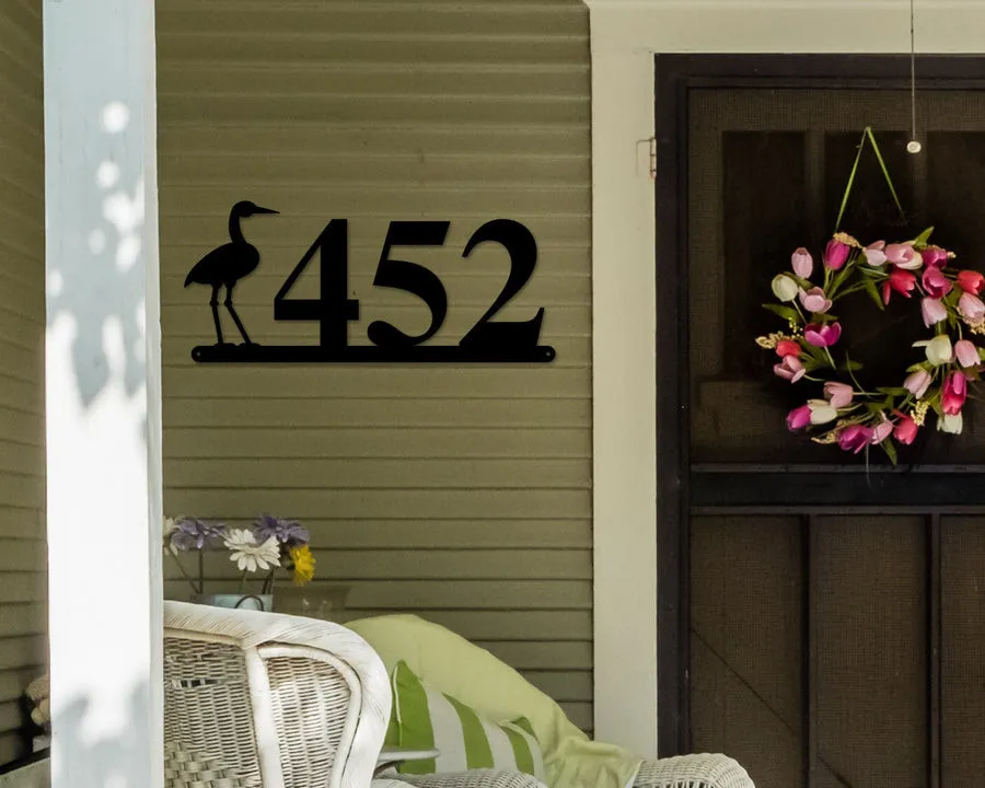 Crane Sign, Crane Address Sign, Bird House Numbers Custom Family Name Metal Sign, Personalized Monogram Wall Metal Art