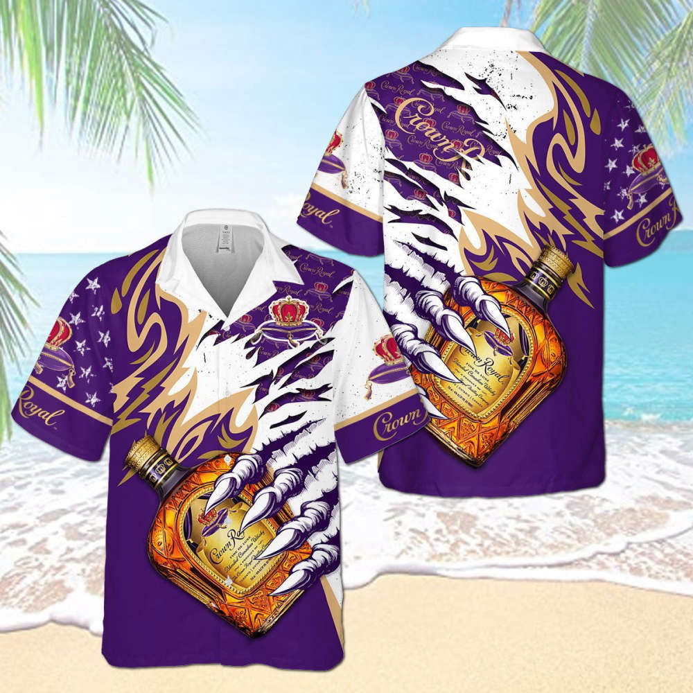 Crown Royal Hawaiian Shirt For Men – Claws Marks Us Flag 3d – Patriotic Summer Beach Vacation Outfit