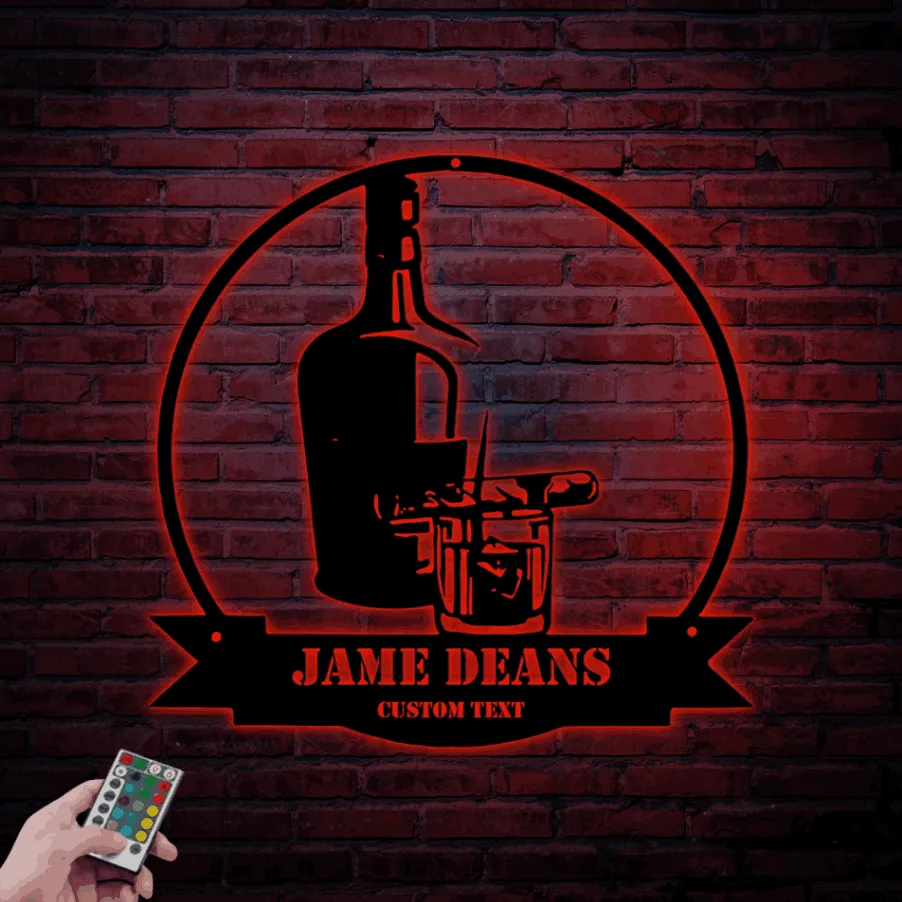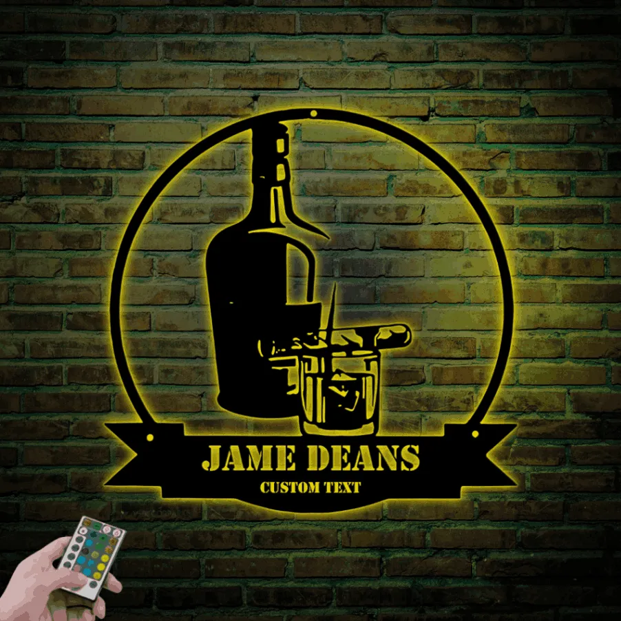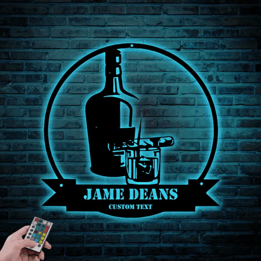 Custom Bar And Grill Metal Sign With Led Lights, Personalized Bar Theme Sign Metal Wall Art, Home Pub Shed Man Cave, Backyard Patio Bar Sign