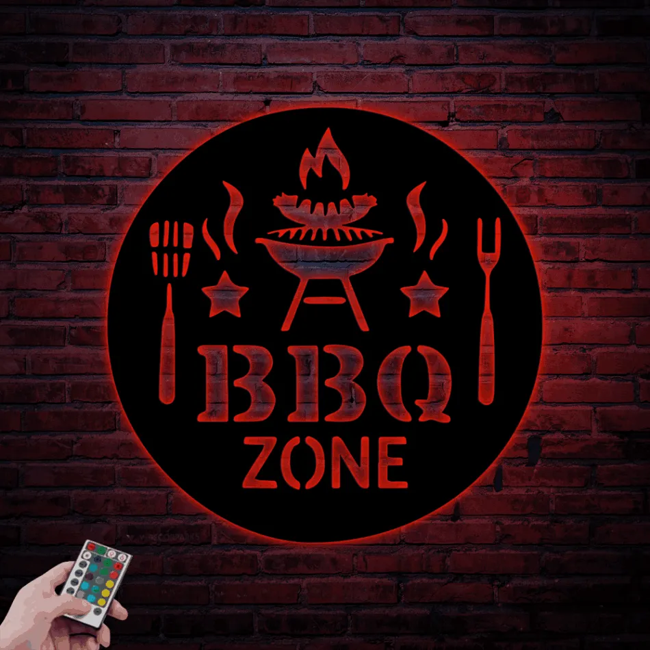 Custom Barbecue Metal Sign With Led Lights, Personalized Bbq Grill Wall Sign Outdoor Bbq Gift Barbecue Garden Bar Decor Home Decor Father’s Gift