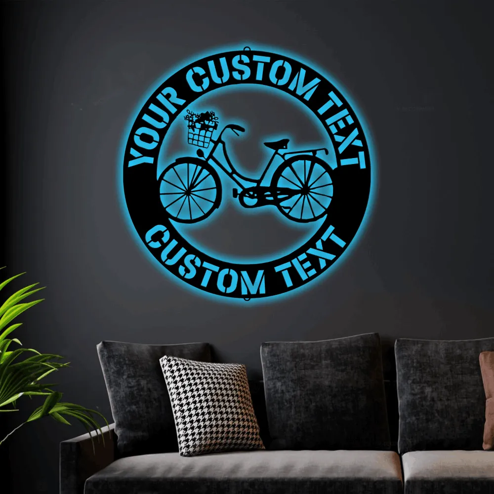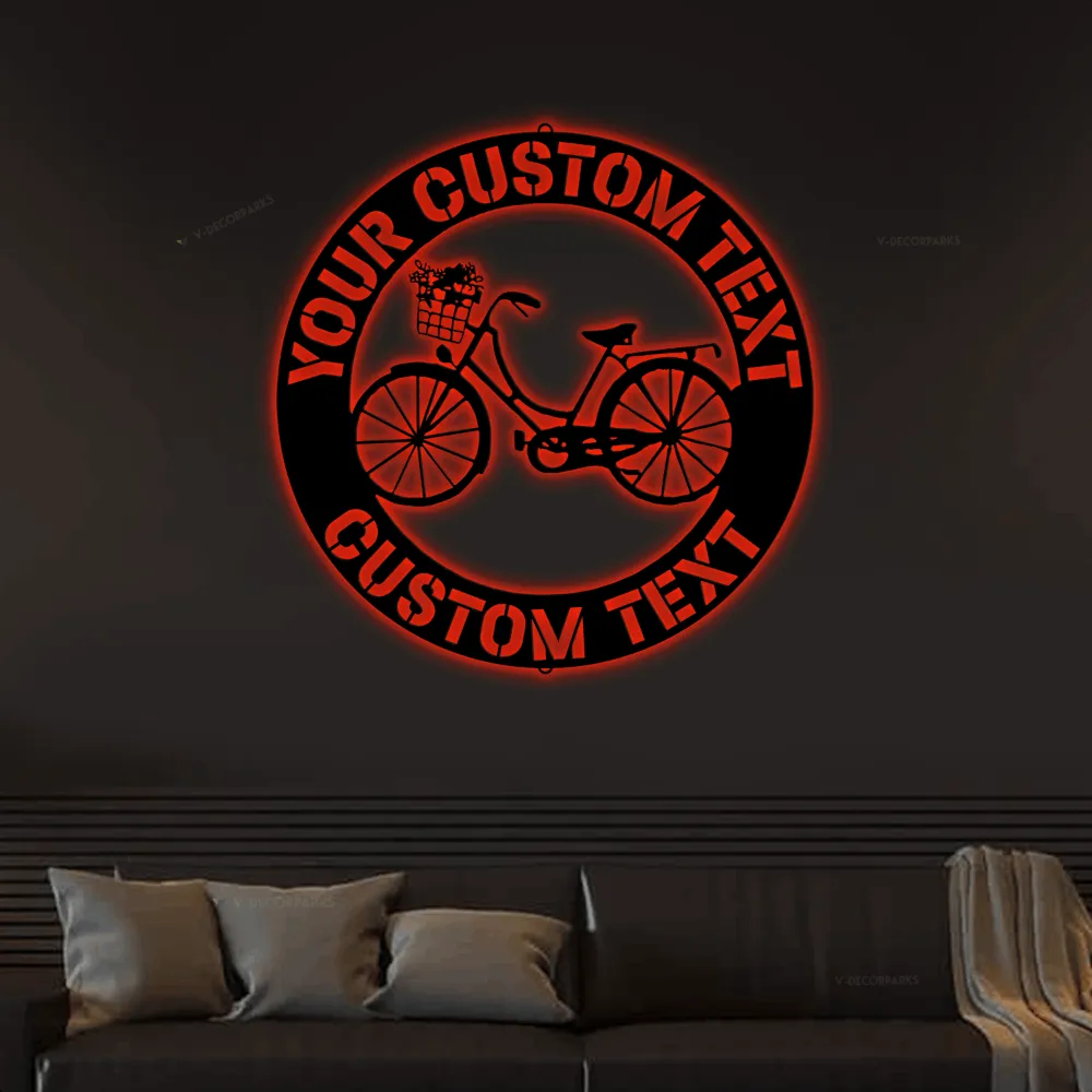 Custom Bicycle Led Lights Sign Monogram Wall Art Personalized Bicycle Monogram Steel Sign, Cycling Wall Home Decor Biker Lovers Gift