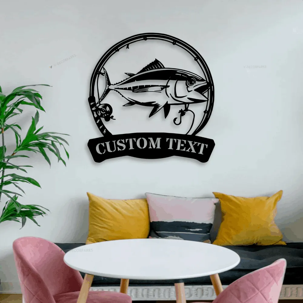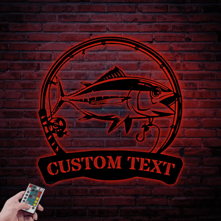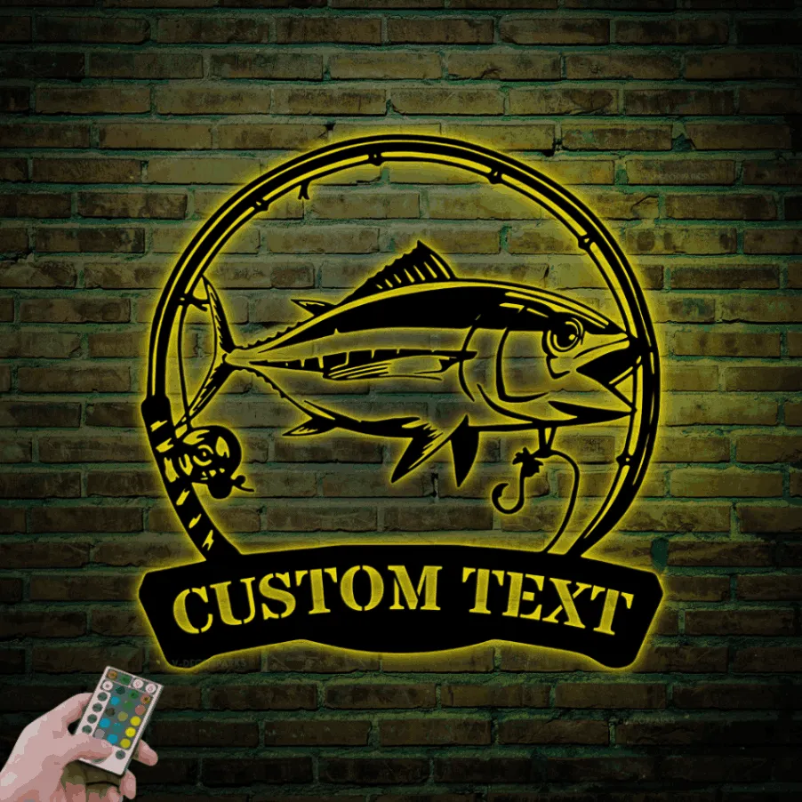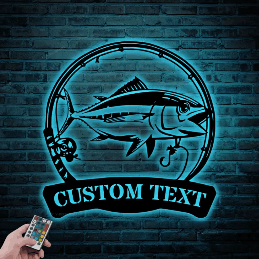 Custom Bigeye Tuna Fishing Metal Sign Led Lights, Personalized Fisher Name Sign Home Decor Kid Boy Girl Nursery Decoration Birthday