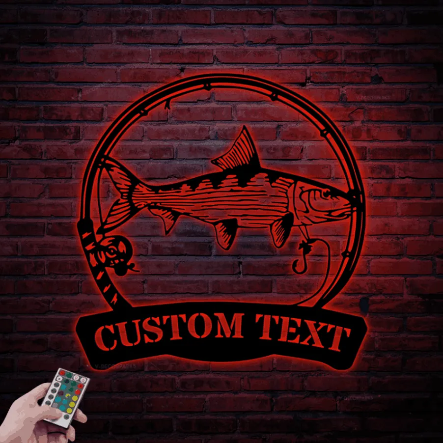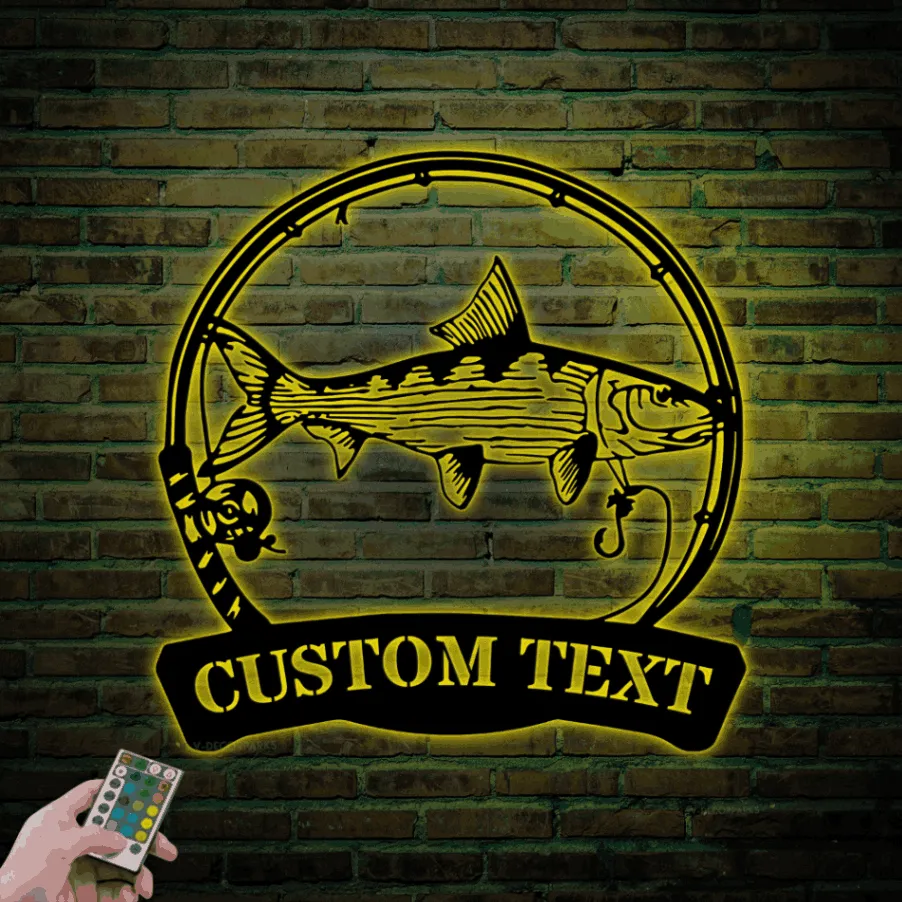 Custom Bonefish Fishing Metal Sign Led Lights, Personalized Fisher Name Sign Home Decor Kid Boy Girl Nursery Decoration Birthday