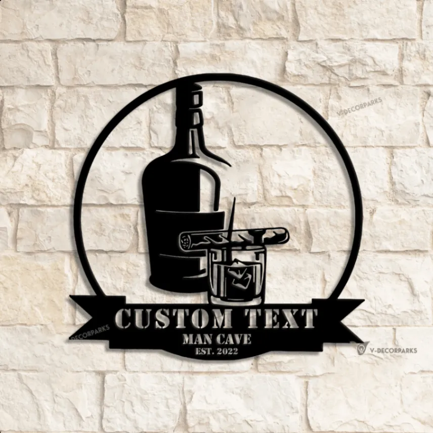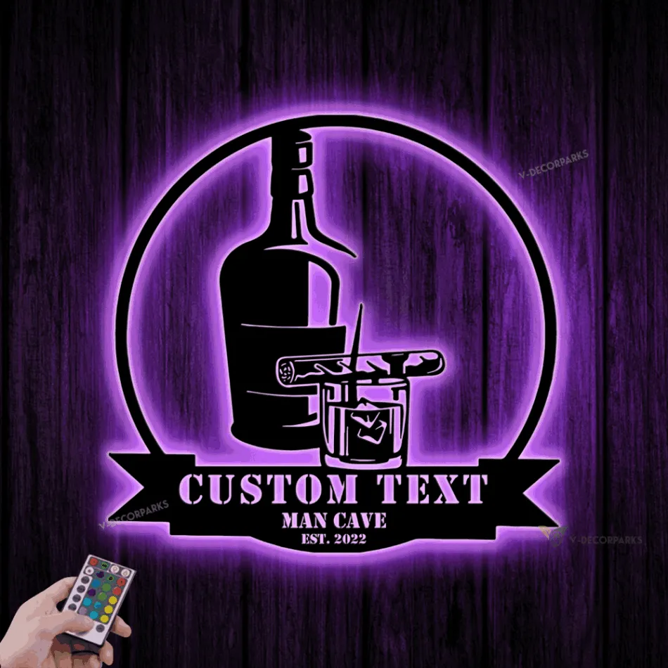Custom Bourbon Cigar Metal Wall Art Led Light, Bar Wall Art Decor, Personalized Whiskey Smoke Sign, Home Bar Pub Wall Hanging, Man Cave Decor