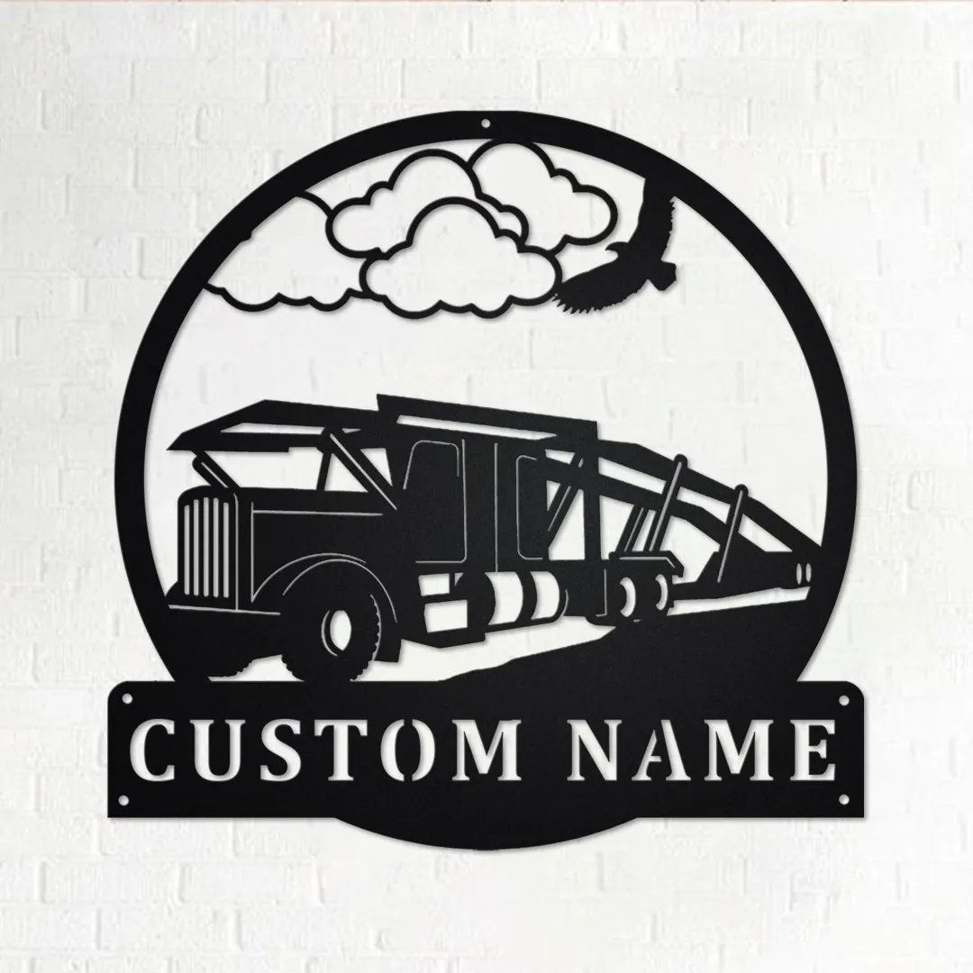 Custom Car Hauler Truck Metal Wall Art, Personalized Truck Driver Name Sign Decoration For Room, Car Hauler Truck Home Decor, Custom Truck