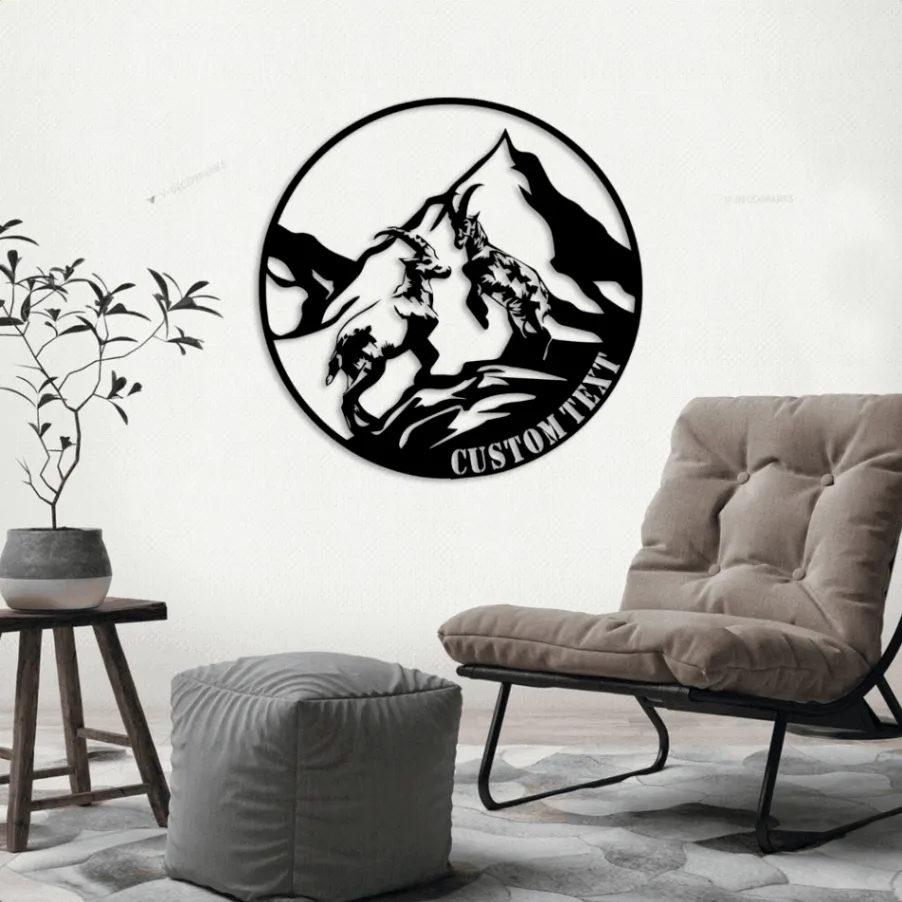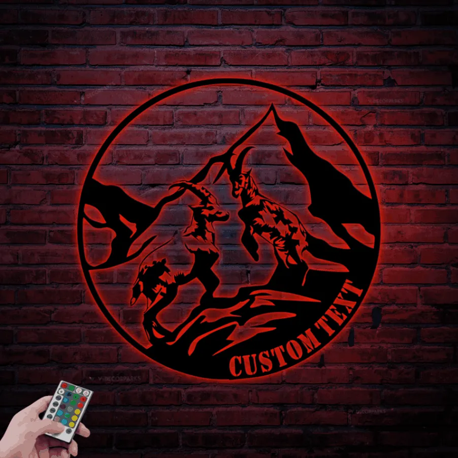 Custom Couple Goat Mountain Metal Sign Led Lights, Personalized Goat Livestock Name Sign Home Decor Goat Farmhouse Barn Nursery Decoration Copy