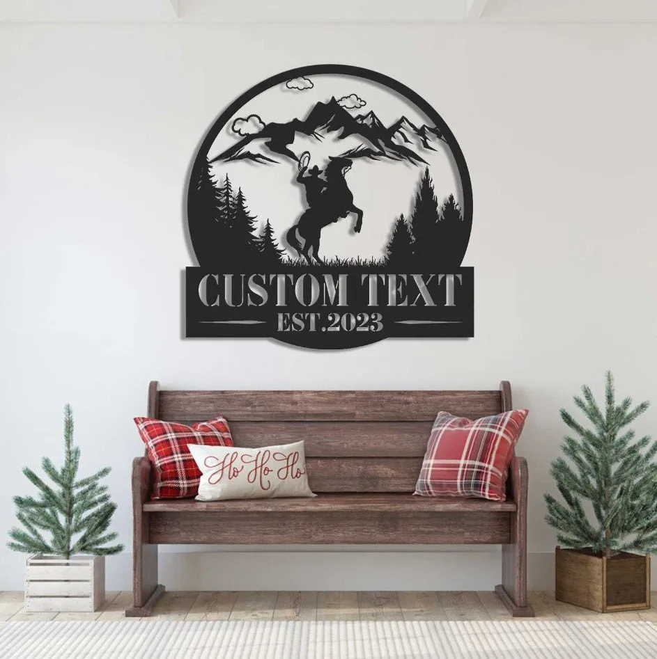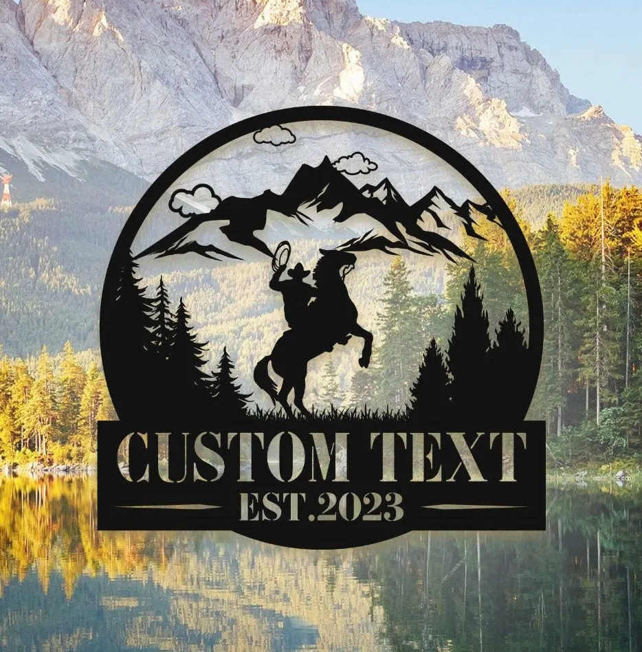 Custom Cowboy Metal Wall Art, Western Cowboy Posse Monogram, Western Riding Cowboys Metal Sign, Personalized Cowboy Name Sign Decor, Cowboy