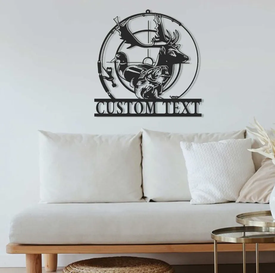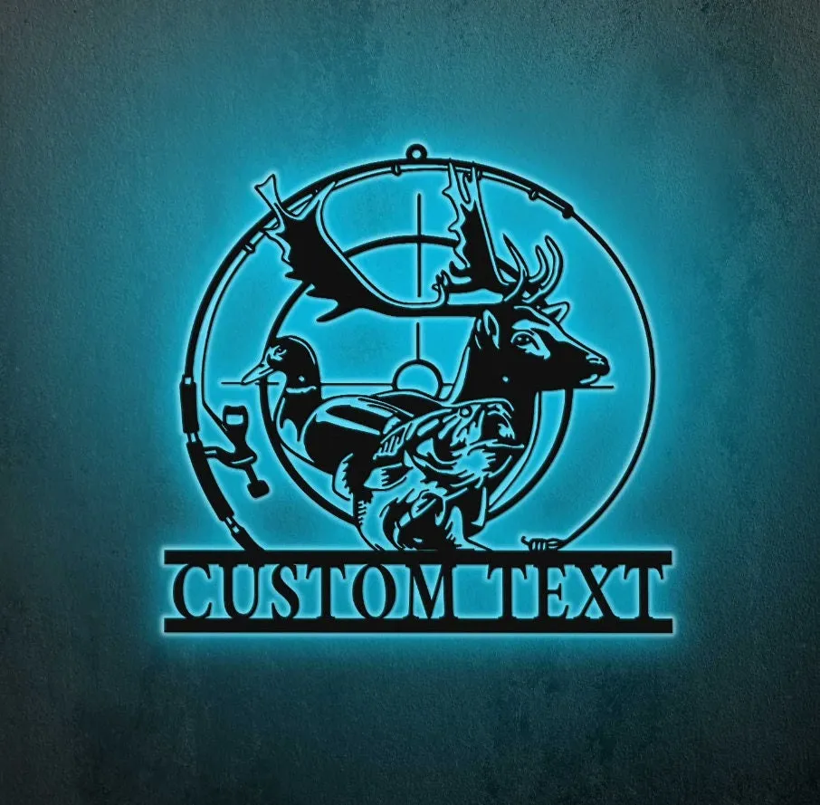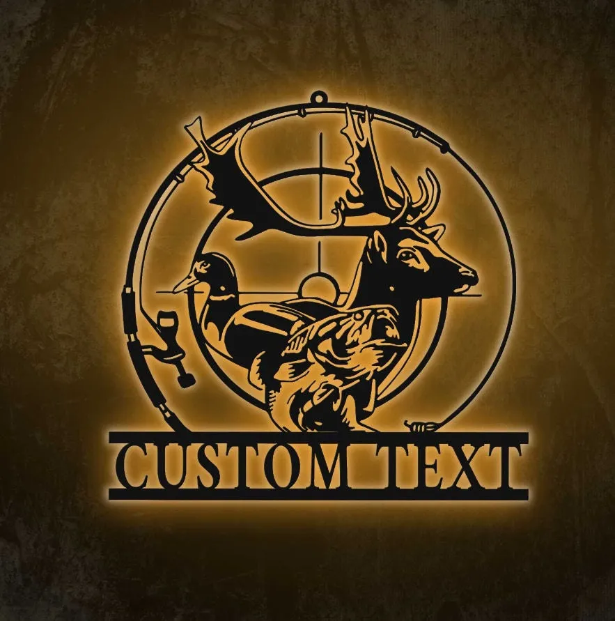 Custom Deer Duck And Bass Fishing Metal Wall Art Led Light Personalized Hunter Name Sign Home Decor Cabin Decoration Housewarming Xmas Gift