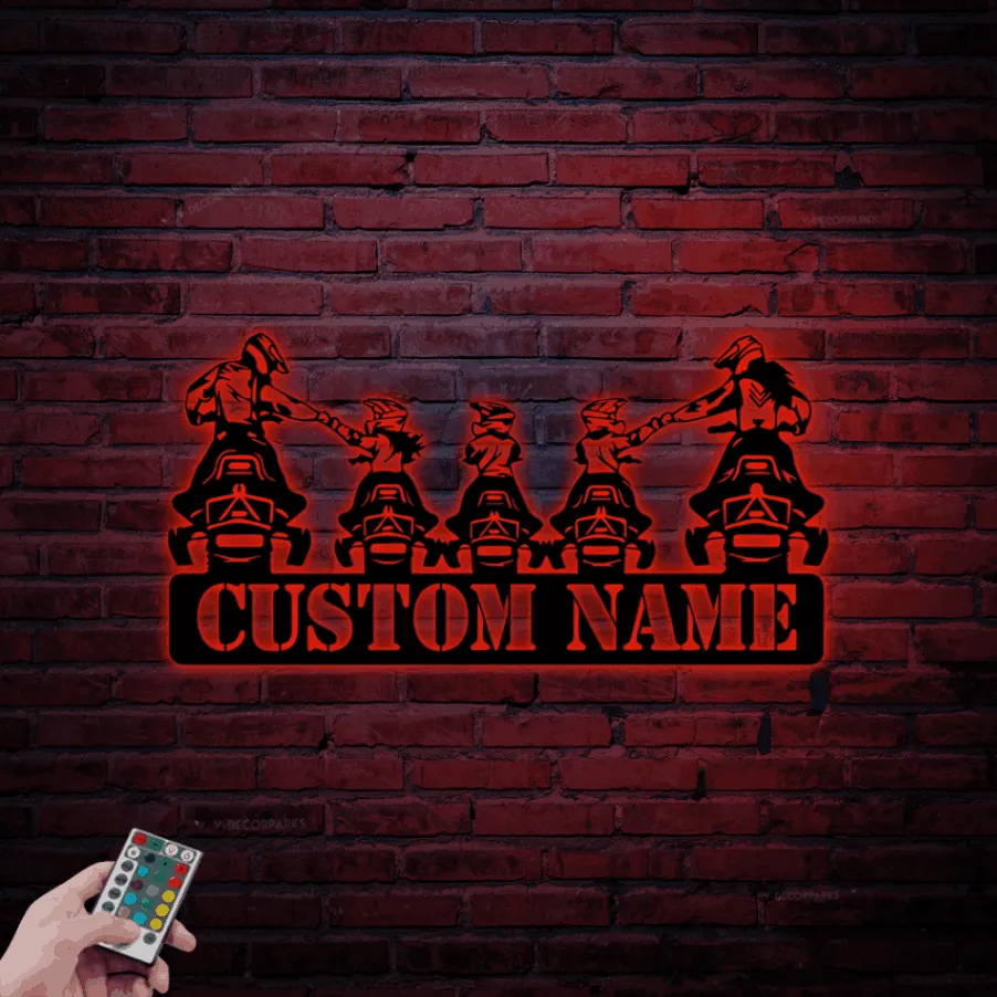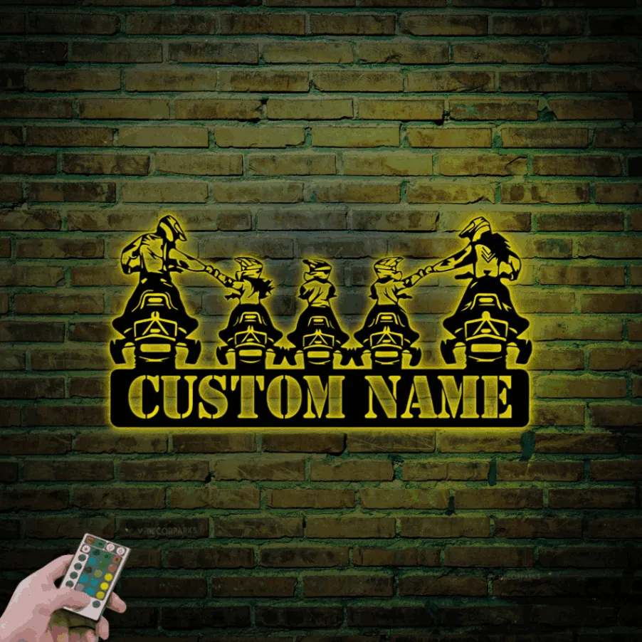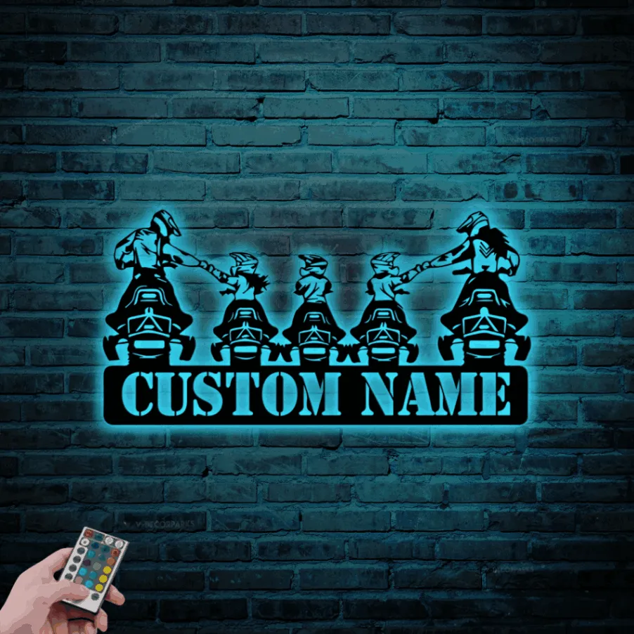 Custom Family Snowmobile Metal Sign Led Lights, Personalized Ski Doo Name Sign Home Decor Motor Sled Biker Decoration Birthday Xmas Gifts