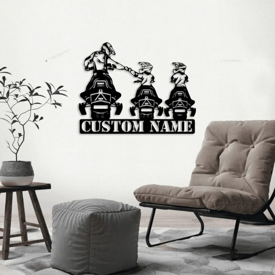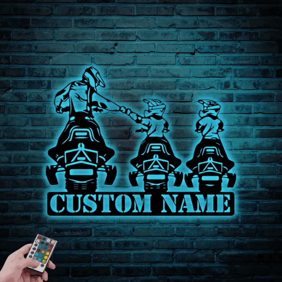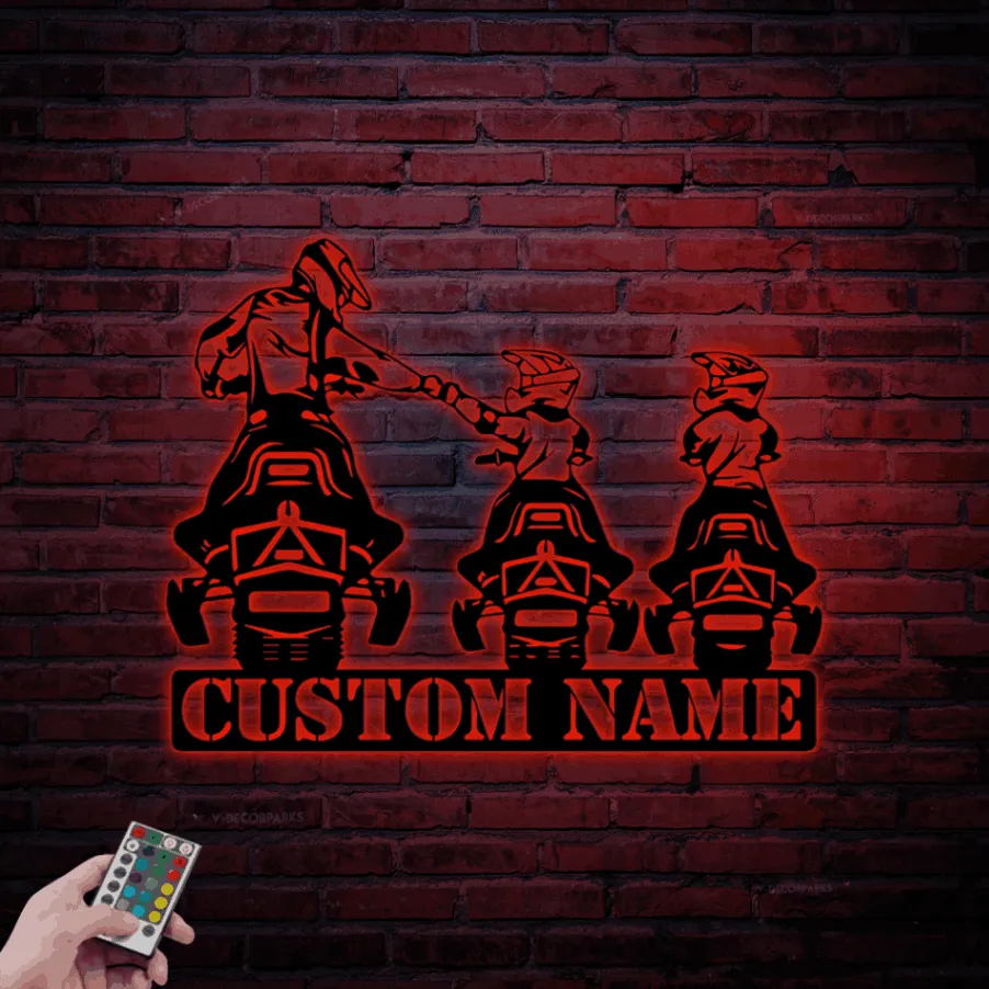 Custom Family Snowmobile Metal Sign Led Lights, Personalized Ski Doo Name Sign Home Decor Motor Sled Biker Decoration Birthday Xmas Gifts