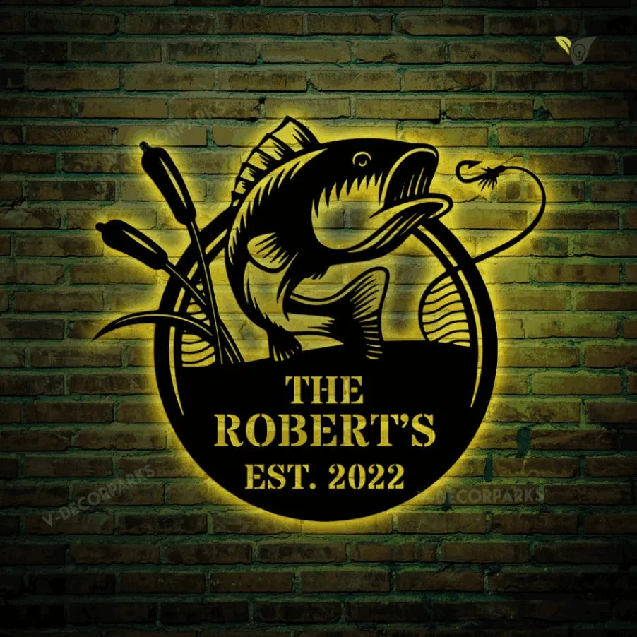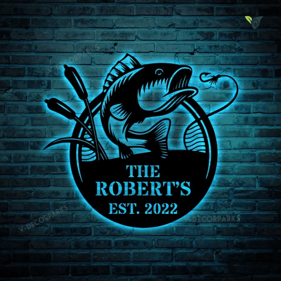 Custom Fishing Metal Name Sign With Led Lights, Fishing Metal Monogram, Fishing Gifts For Men, Fishing Metal Sign, Fisherman Gift