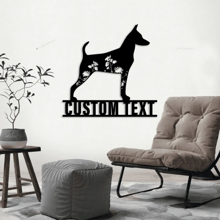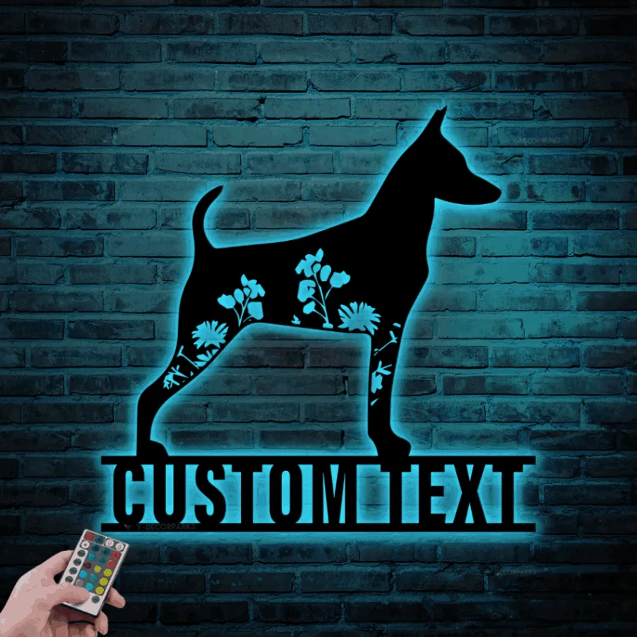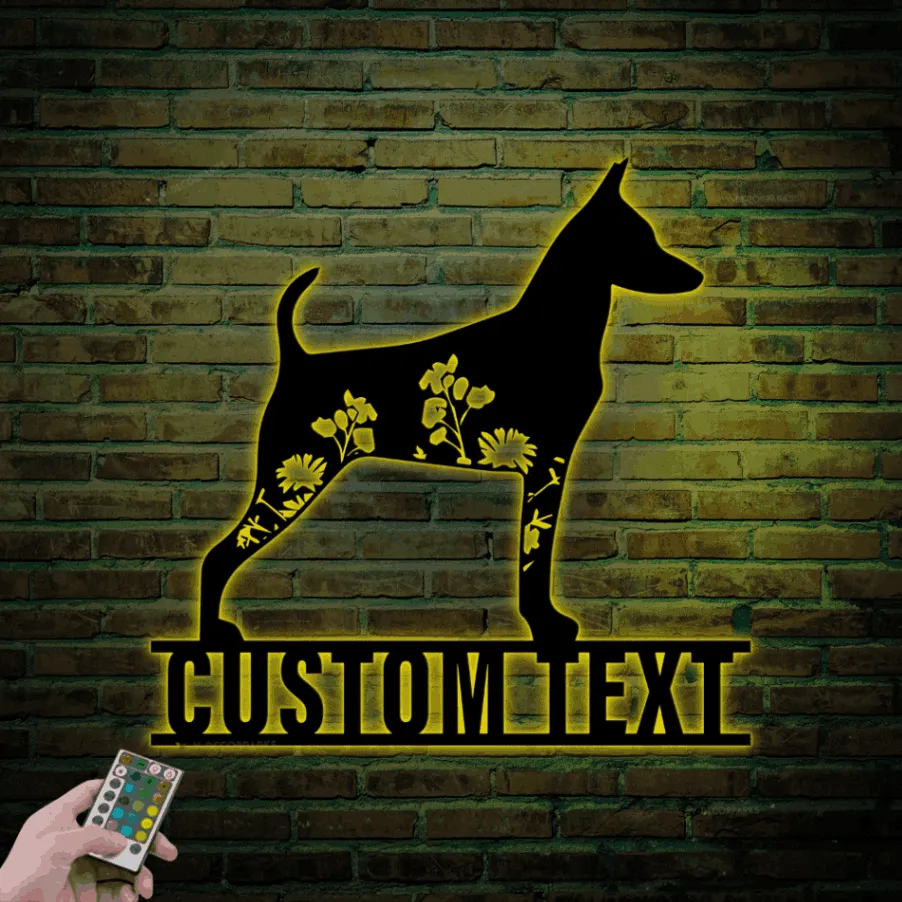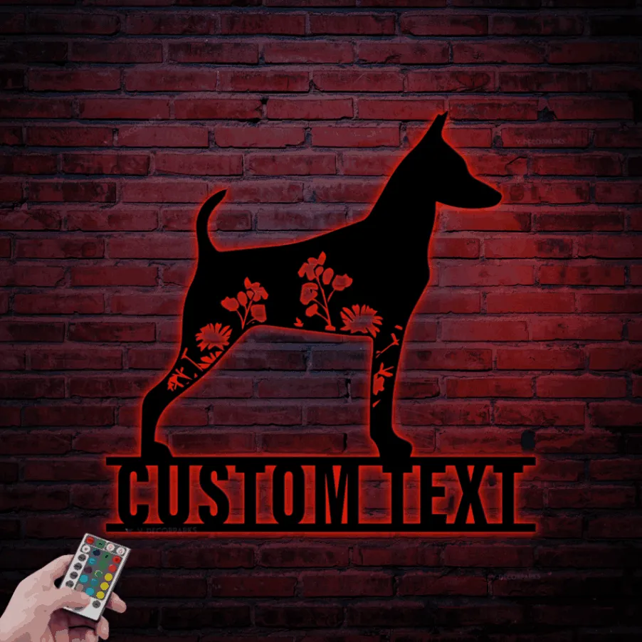 Custom Floral Miniature Pinscher Metal Sign Led Lights, Personalized Flower Dog Lover Name Sign Home Decor Pet Animal Decoration Xmas