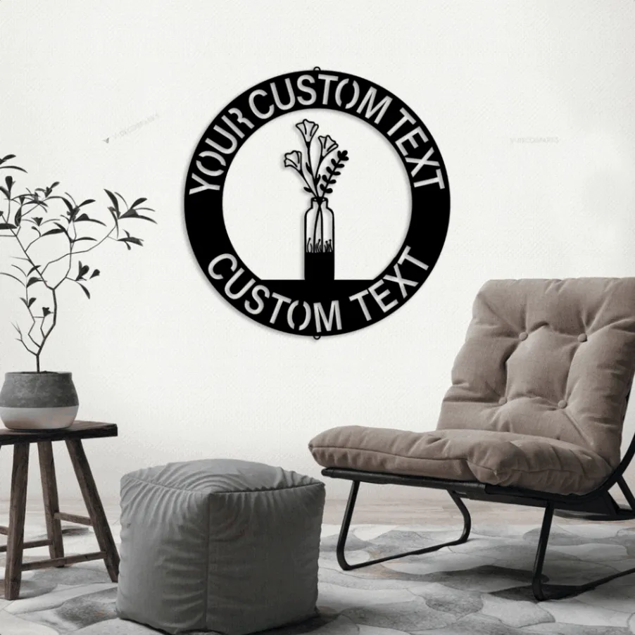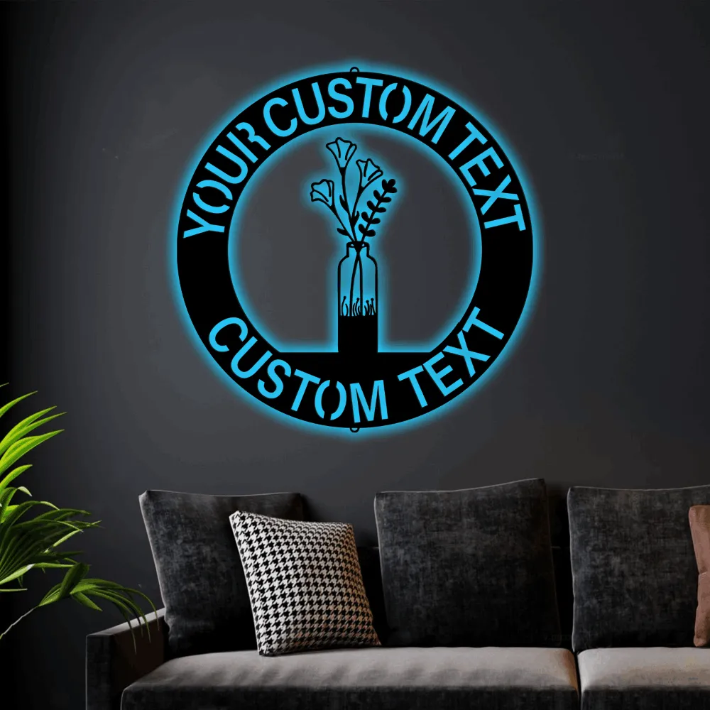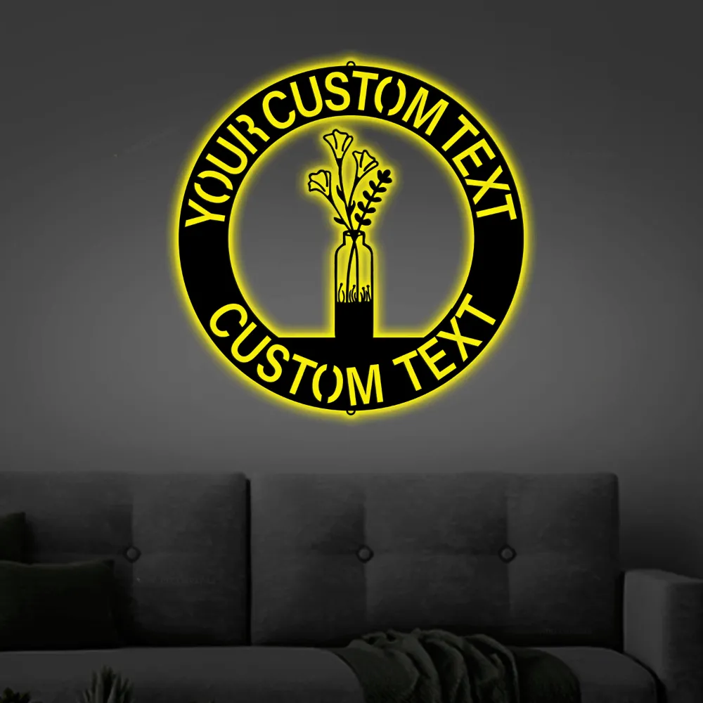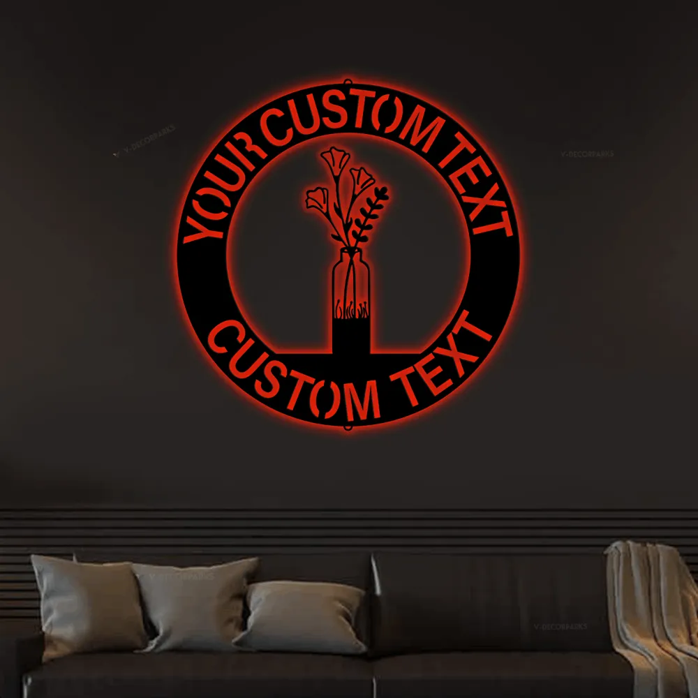 Custom Flower Vase Monogram With Led Lights Steel Sign, Fall Flower Vase Wall Sign Personalized Gift Home Wall Decor Housewarming Gift