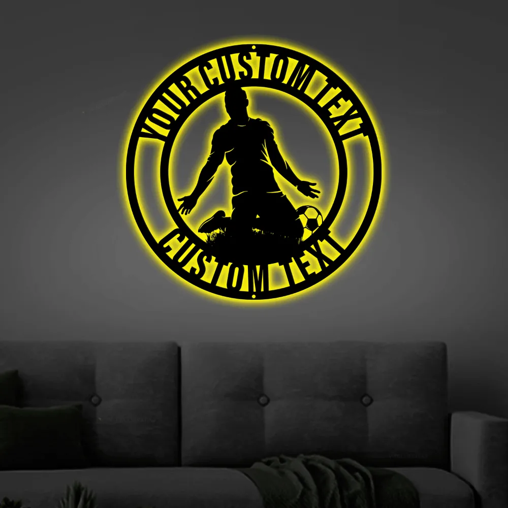 Custom Football Led Lights Sign Monogram Steel Sign, Personalized Football Wall Art Sports Room Decor Soccer Wall Monogram Gift Idea