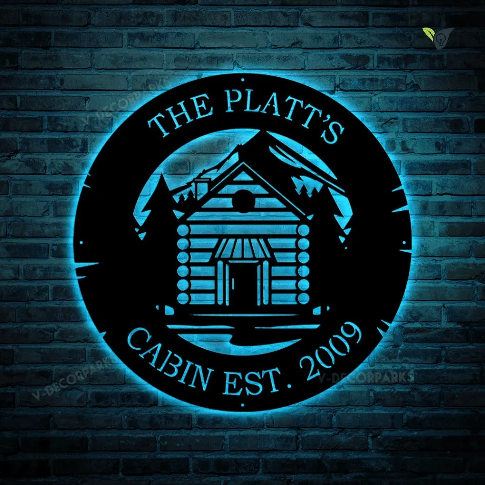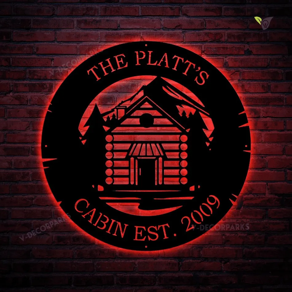 Custom Forest House With Family Name Metal Sign With Led Lights, Wild, Forest, Mountains, Established, Custom Cabin Decor Metal Wall Art