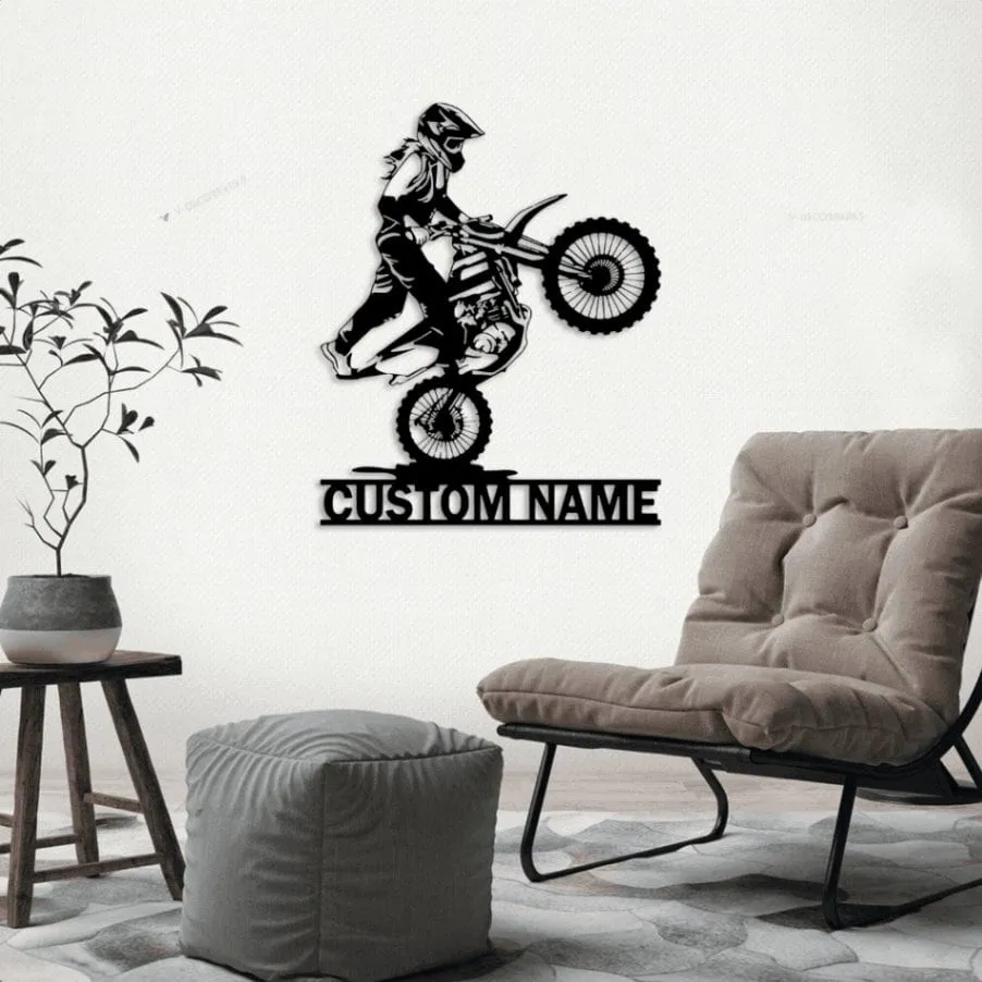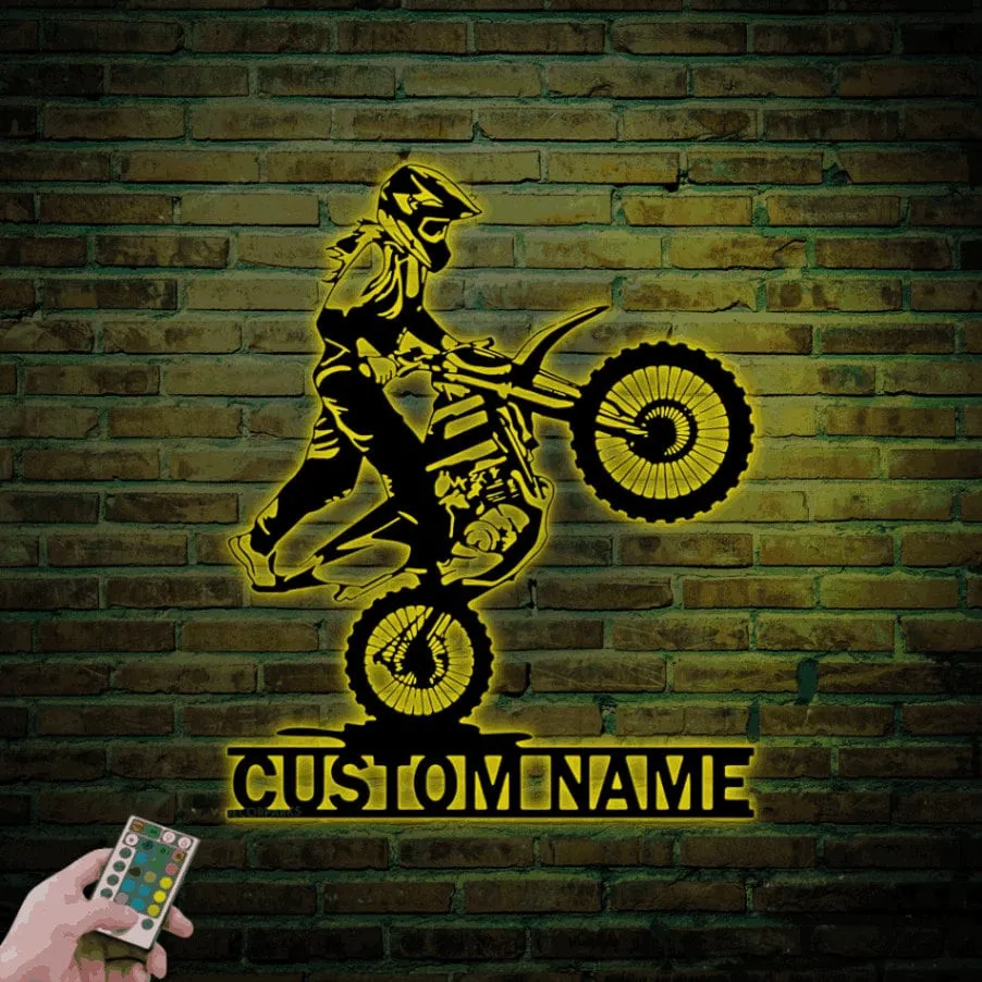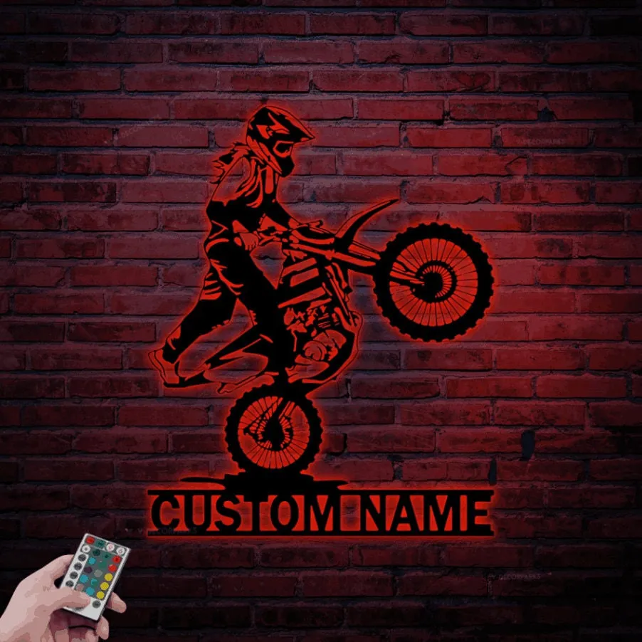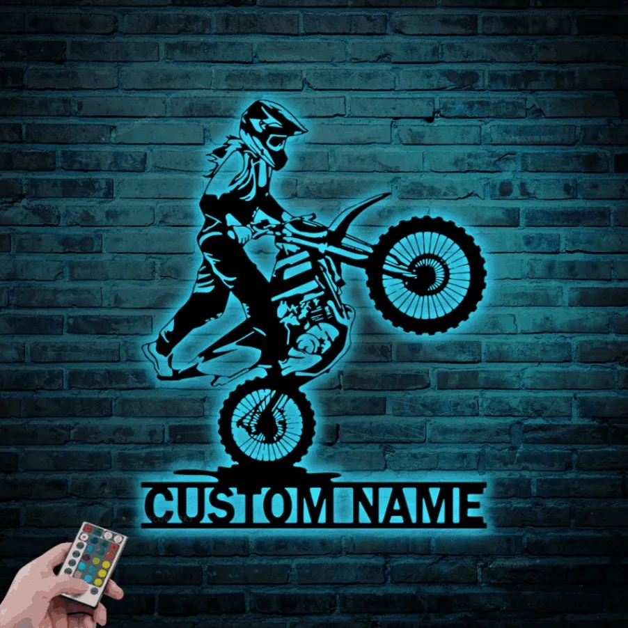 Custom Girl Motocross Biker Metal Sign Led Lights, Personalized Female Dirt Bike Name Sign Home Motorcycle Decor Rider Decoration Xmas