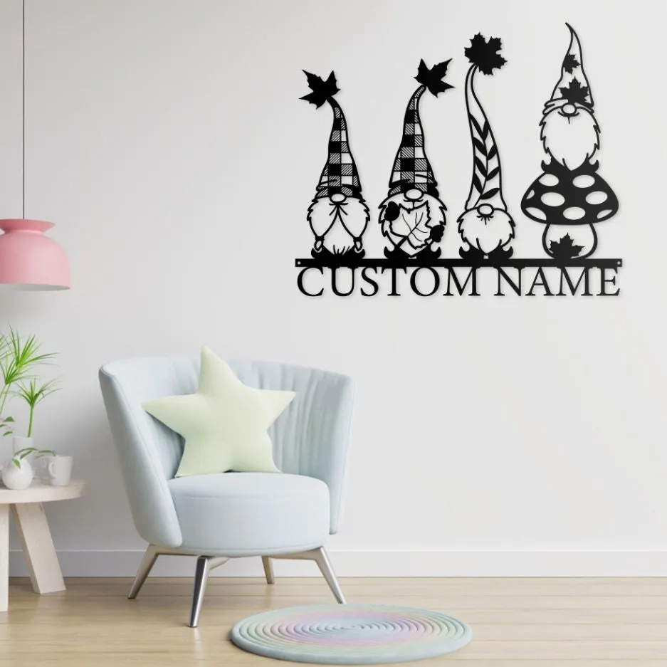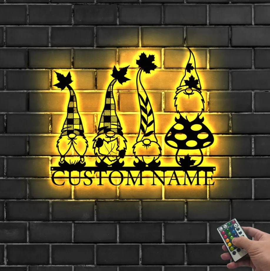 Custom Gnome Metal Wall Art Led Light, Personalized Gnome Lover Name Sign, Gnome Gardening Nursery Decoration Gardener Christmas