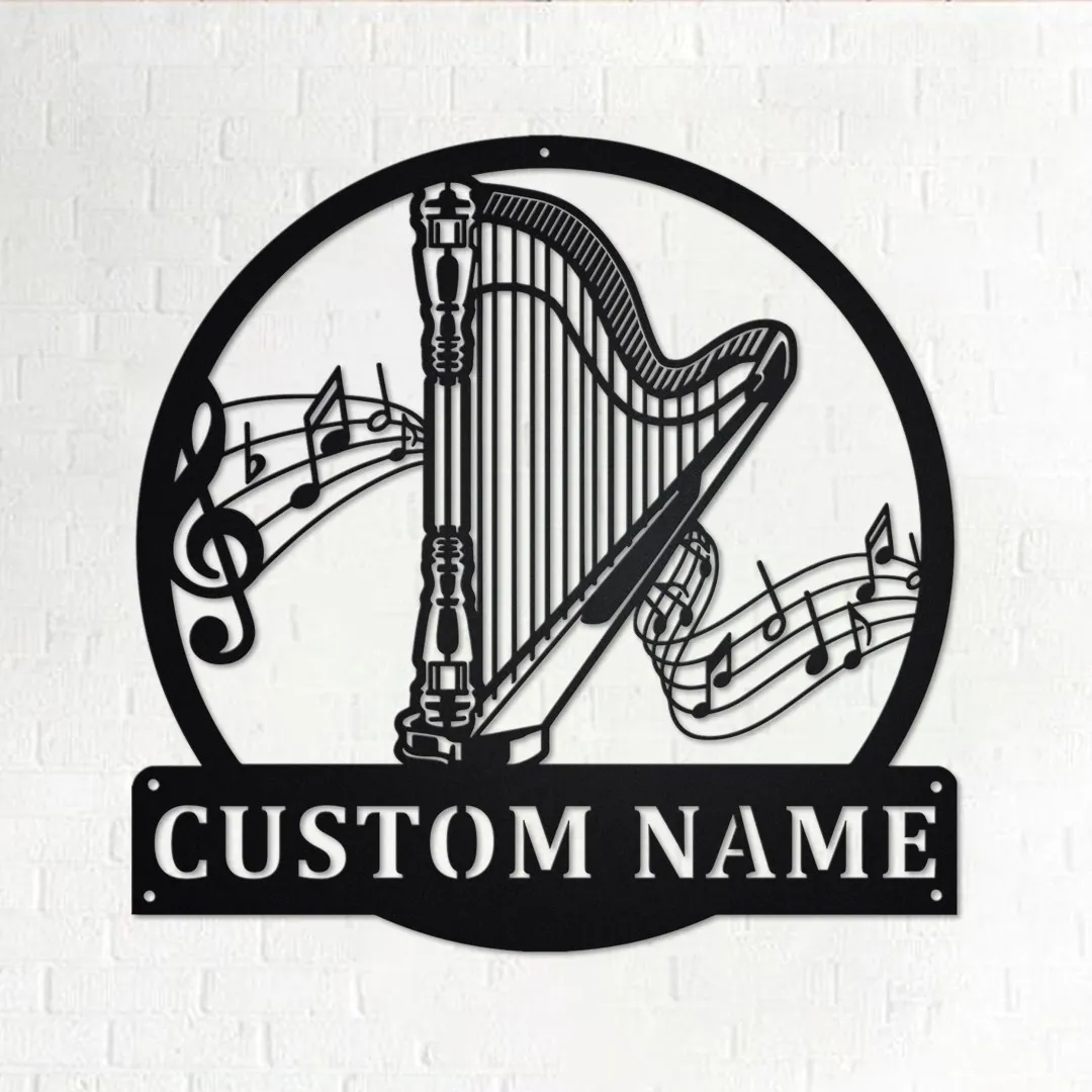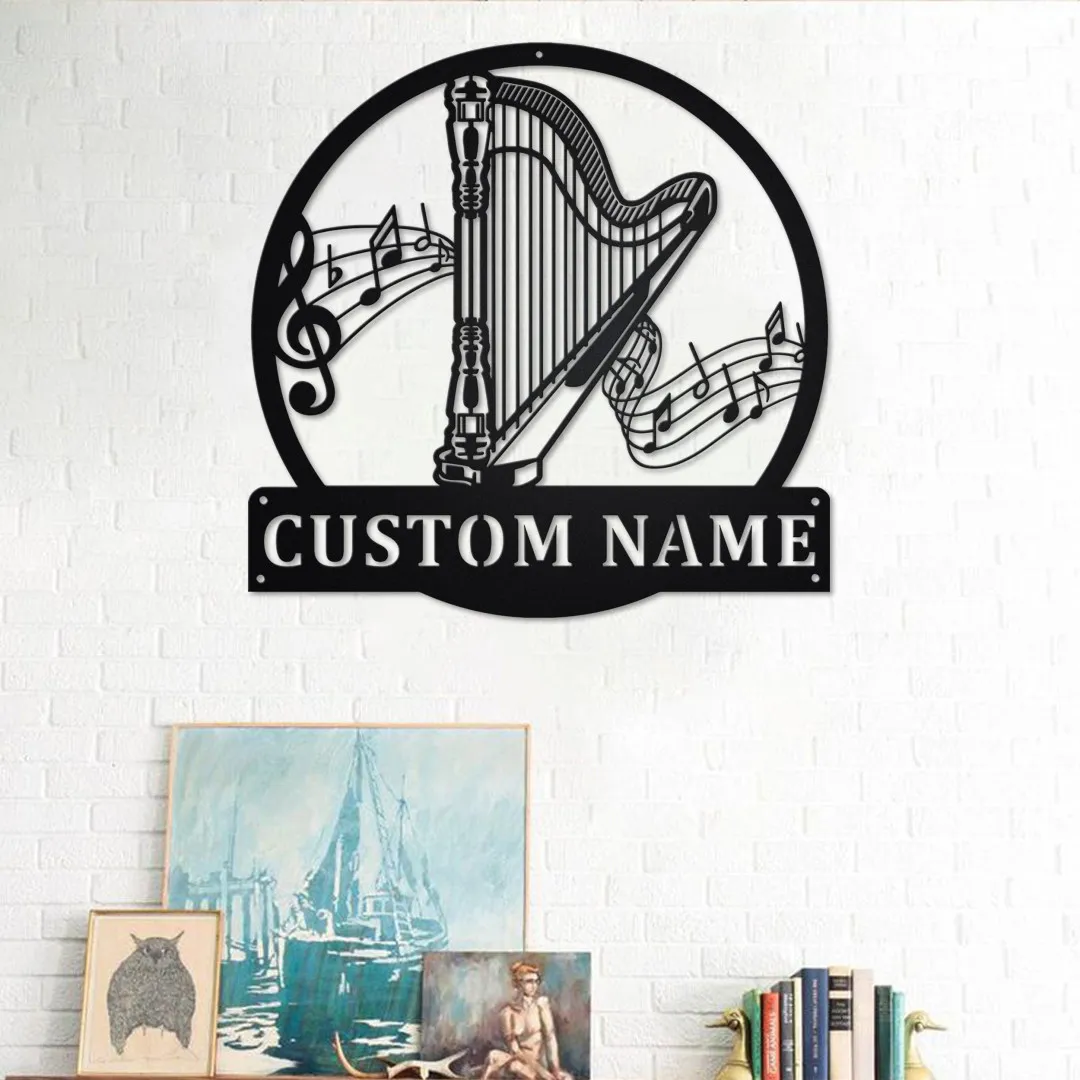 Custom Harp Musical Metal Wall Art, Personalized Harp Musical Name Sign Decoration For Room, Harp Musical Home Decor, Custom Harp Musical