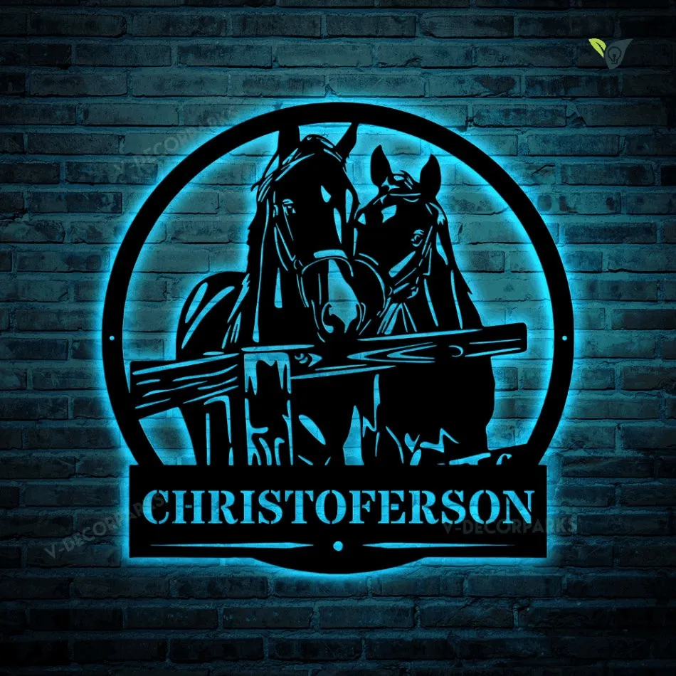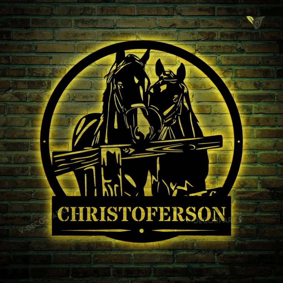 Custom Horses Cut Metal Sign With Led Lights, Horse Ranch Cut Metal Sign With Led Lights Gate Decor, Horse Lover Metal Wall Art