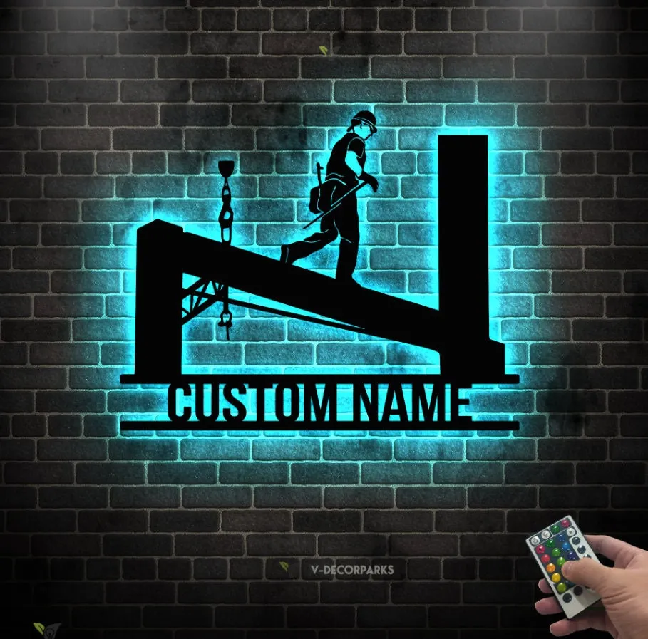 Custom Ironworker Metal Sign Led Lights, Ironworker Home Decor, Welder Name Sign, Welder Wall Hanging Xmas Gift Birthday Gift For Ironworker