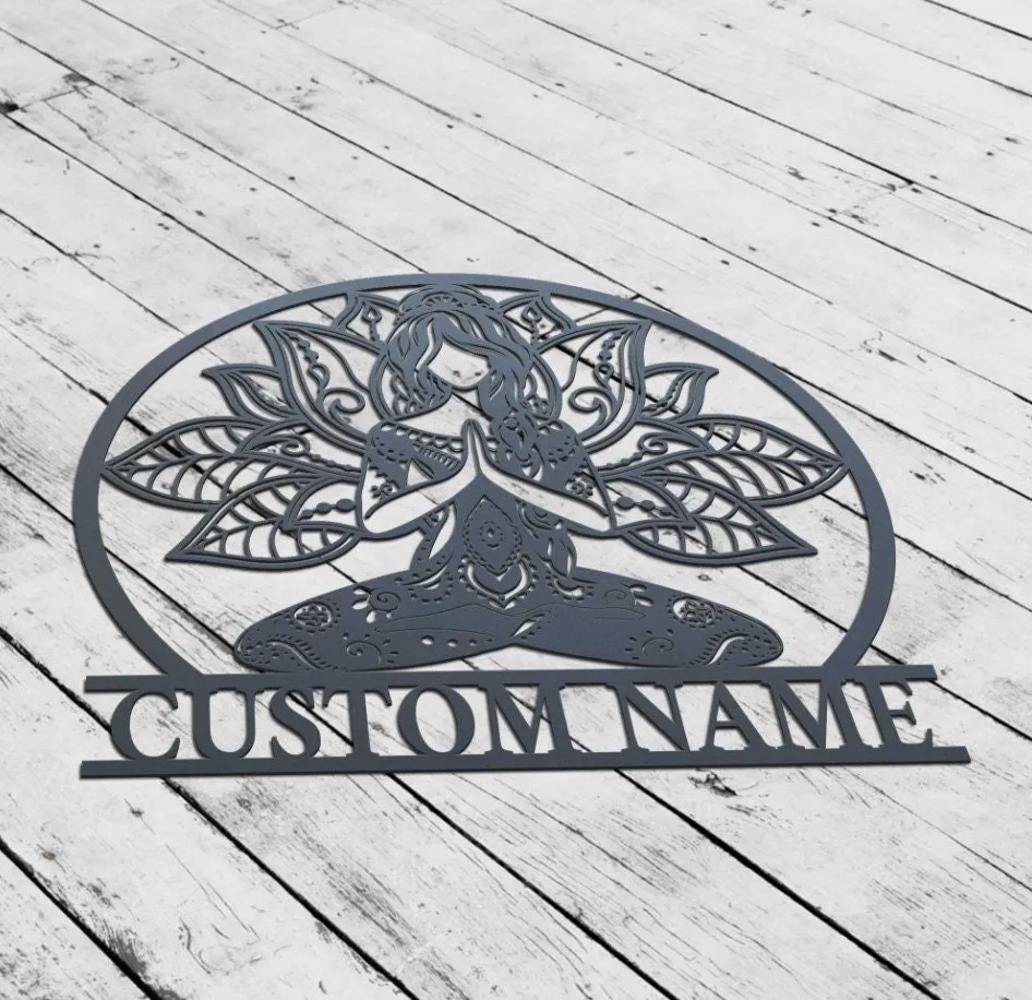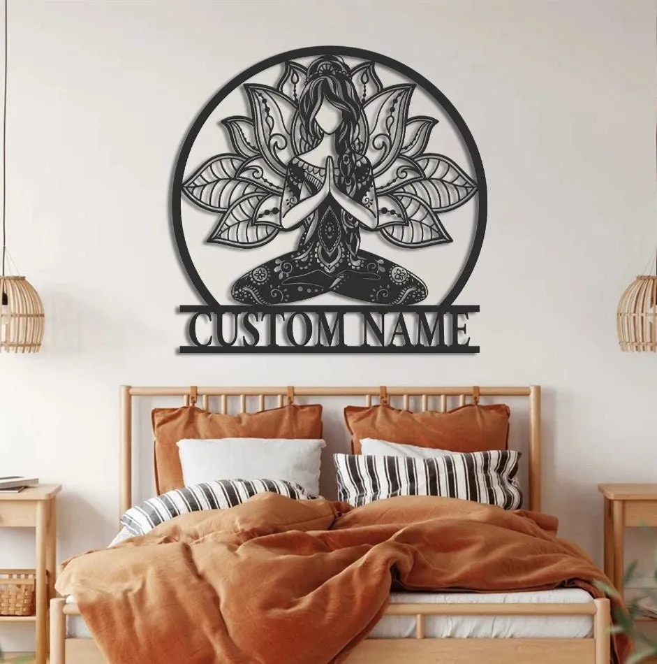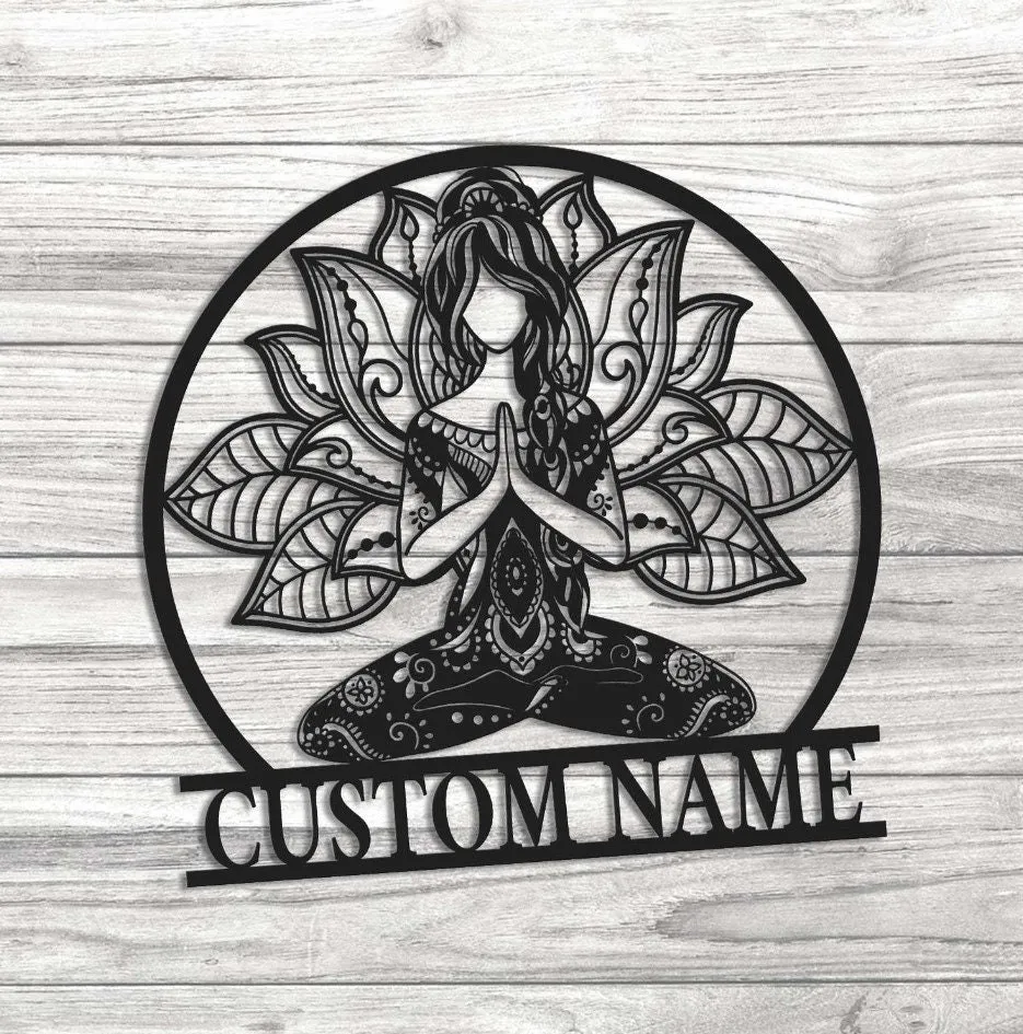 Custom Mandala Yoga Girl Metal Wall Art, Yoga Room Decoration Hanging Door Xmas Gift, Personalized Mandala Name Sign Home Decor