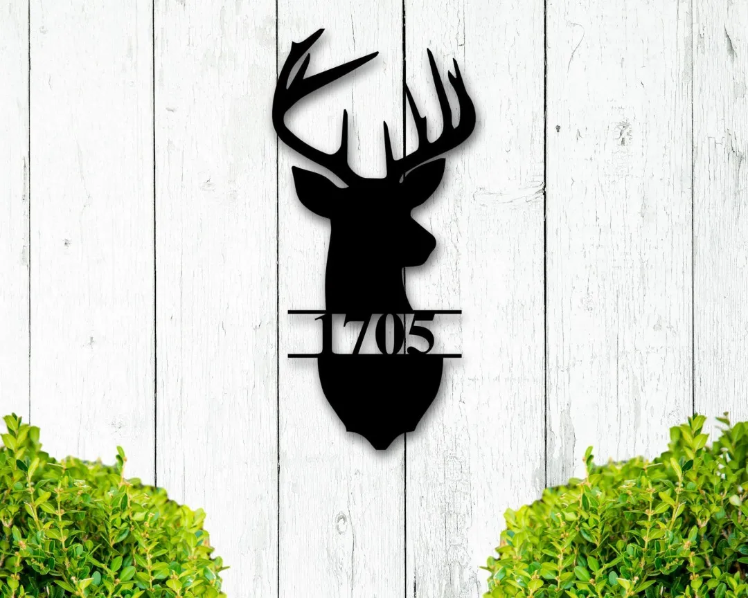 Custom Metal Address Sign, Deer Antler Metal House Numbers, Outdoor Metal – Mailbox Sign – Metal Address Plaque – Housewarming Gift