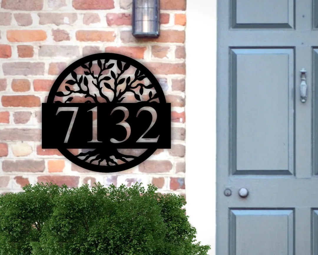 Custom Metal Address Sign, Metal House Numbers, Metal Address Plaque, Front Porch Sign, Address Number Sign, Tree Of Life Address Sign