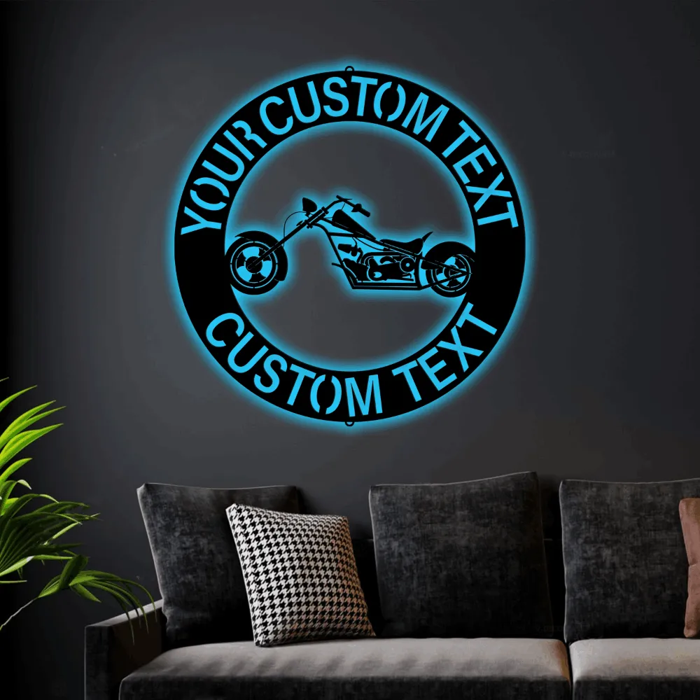 Custom Motorcycle Sign Led Lights, Garage Wall Art Gift Monogram Steel Sign, Garage Decor Motorcycle Wall Art Decor