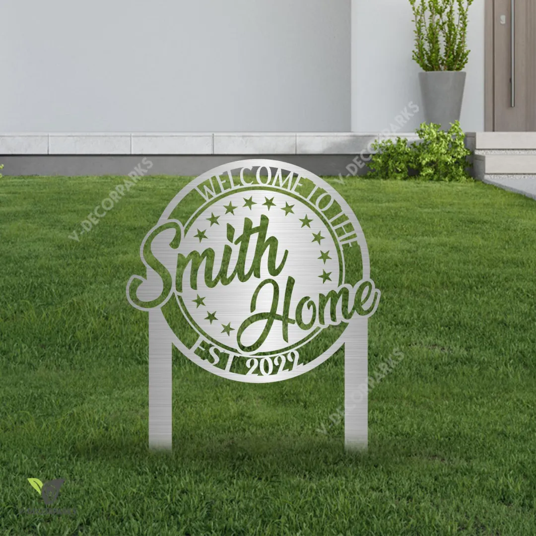 Custom Name Welcome Metal Yard Sign, Laser Cut Garden Stake