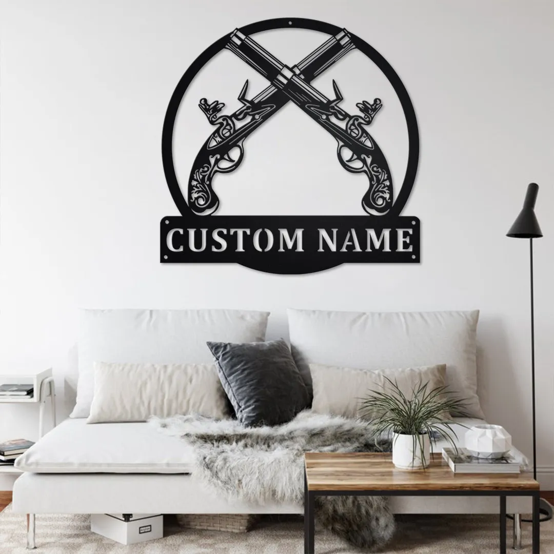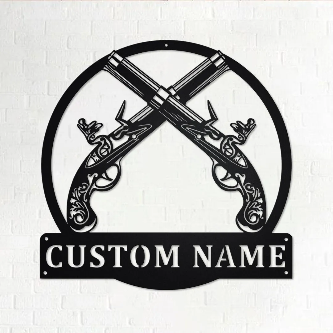 Custom Old Flintlock Pistol Metal Wall Art, Personalized Old Flintlock Pistol Name Sign Decoration For Room, Old Flintlock Pistol Home Decor
