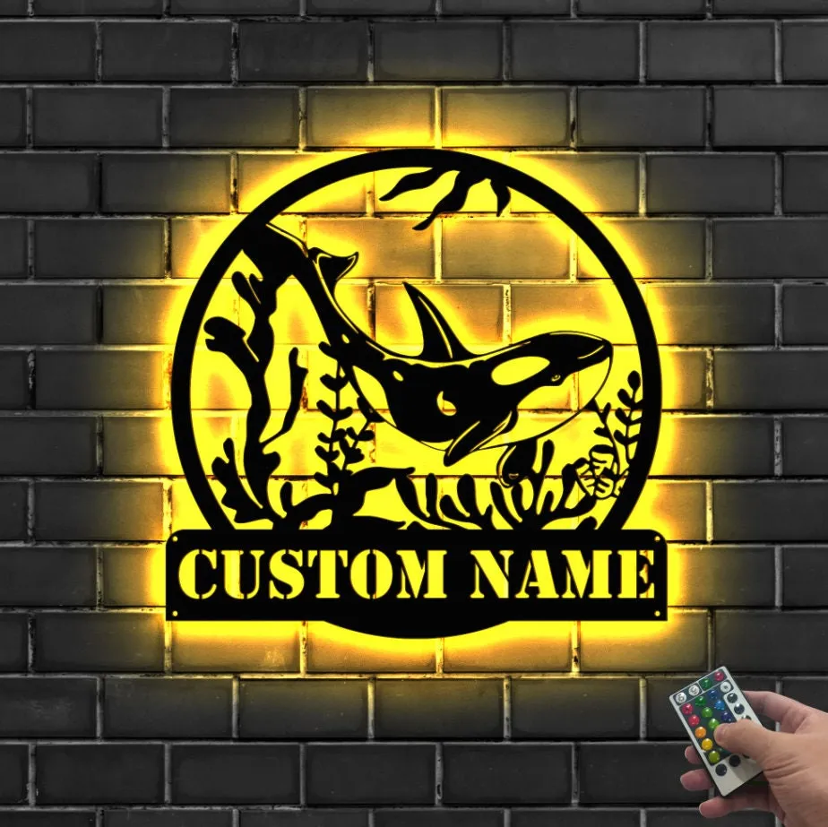 Custom Orca Whale Metal Sign Led Lights, Orca Whale Metal Sign, Orca Whale Neon Metal Sign, Whale Wall Hanging For Decoration, Xmas Gift