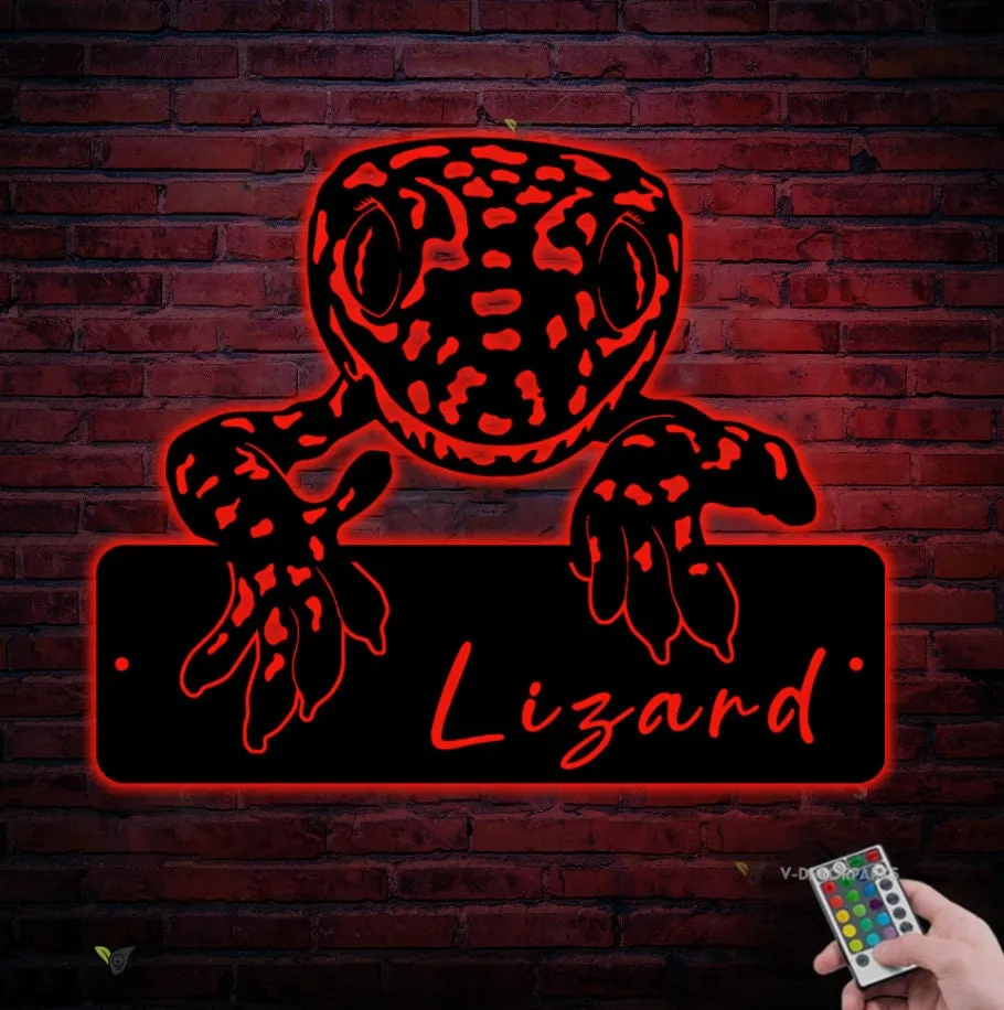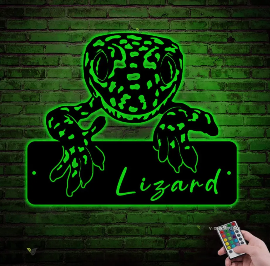 Custom Peeking Lizard Metal Wall Art Led Light, Personalized Lizard Name Sign Decoration For Home, Xmas Gift, Kid Room Nursery Decoration