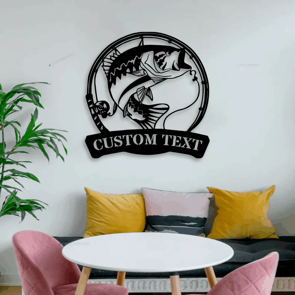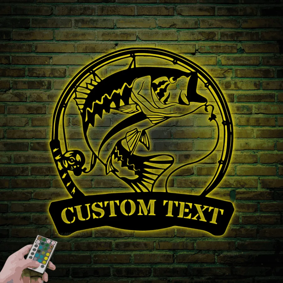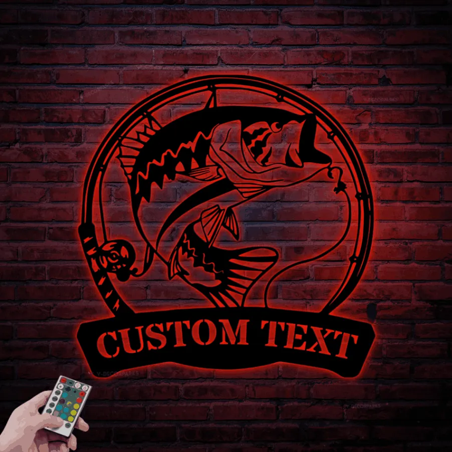 Custom Smallmouth Bass Fishing Metal Sign Led Lights, Personalized Fisher Name Sign Home Decor Boy Girl Nursery Decoration Birthday