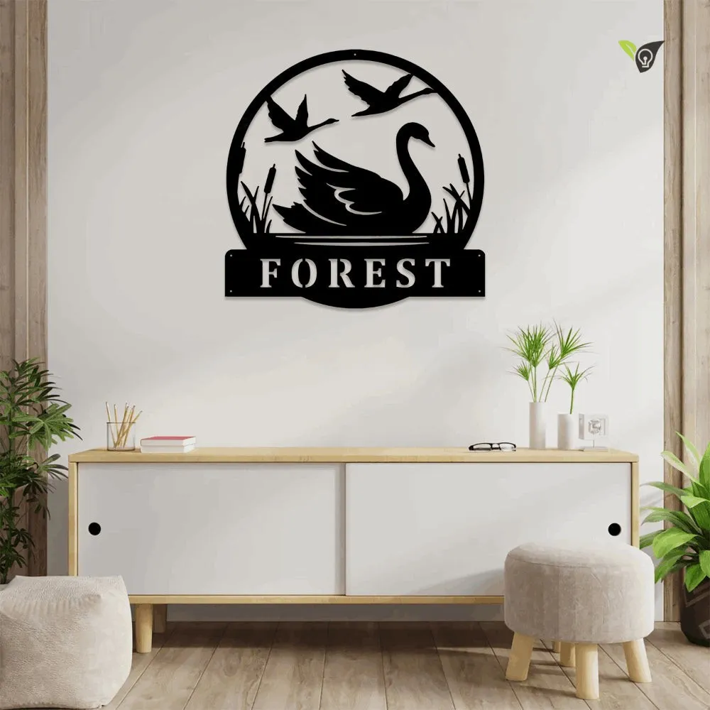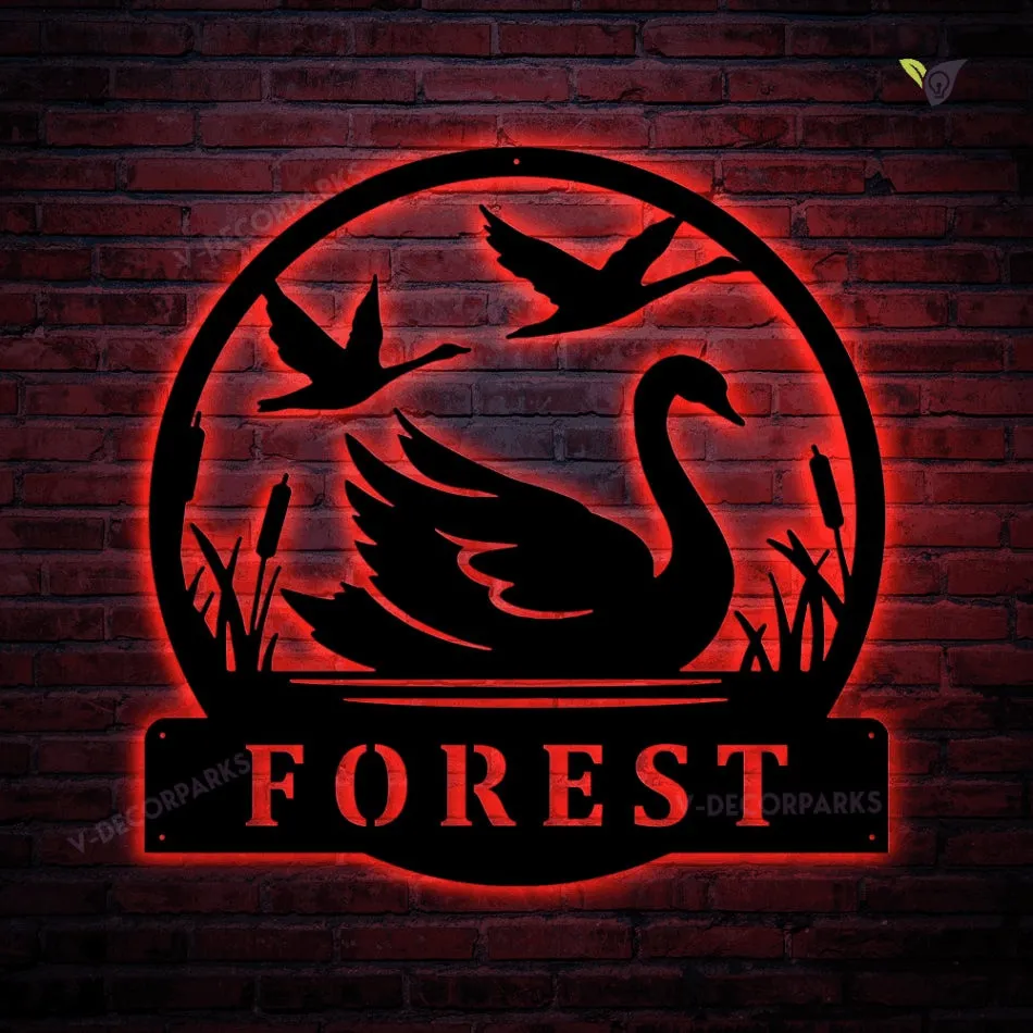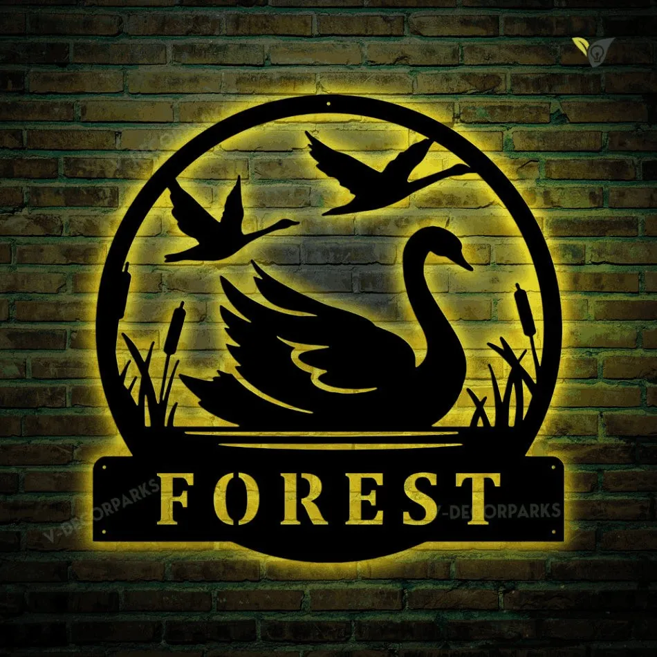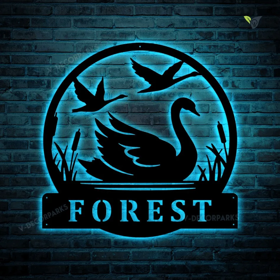 Custom Swan Metal Wall Art With Led Light, Personalized Swan Name Sign Decoration For Room,swan Home Decor, Swan Metal Decor