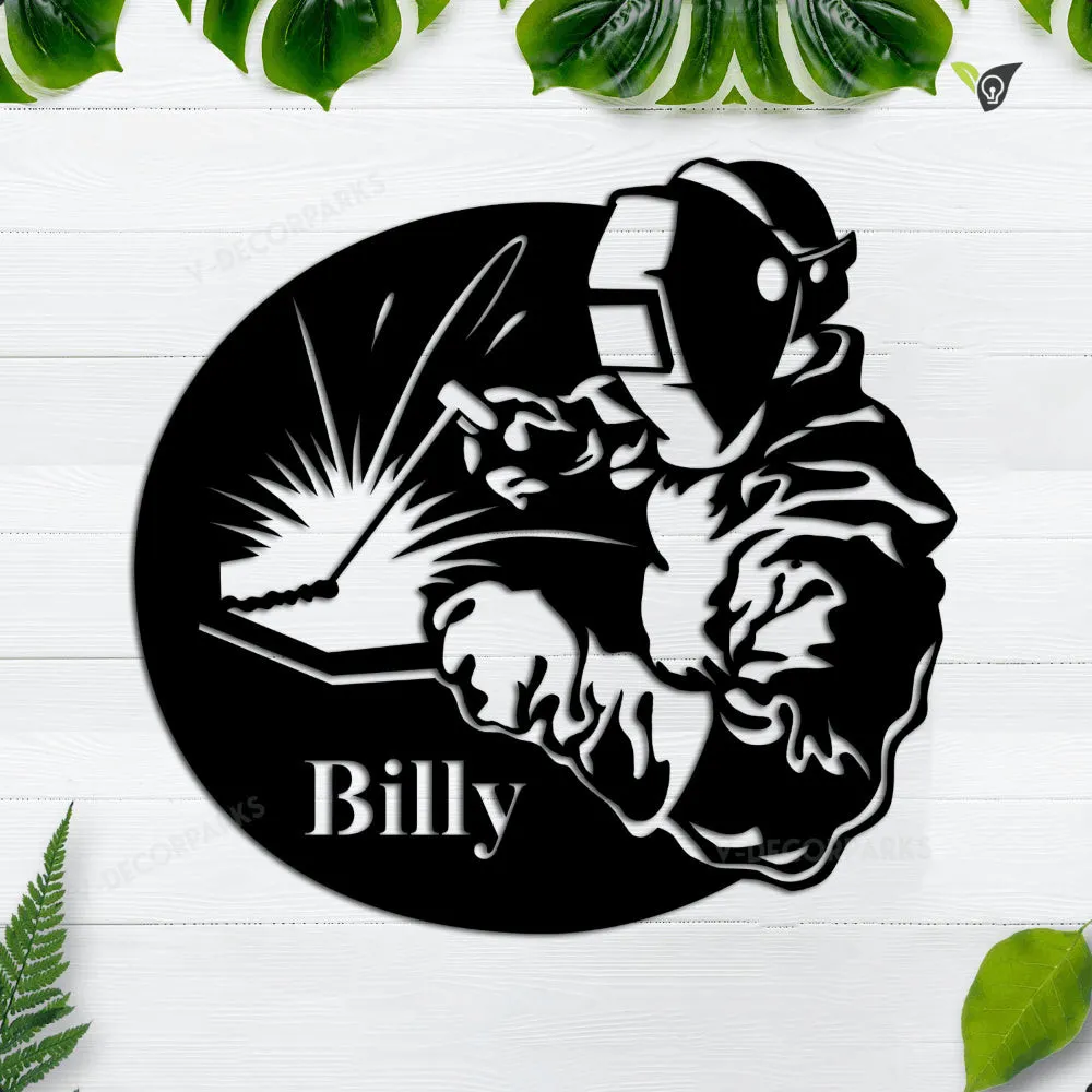 Custom Welder Metal Sign With Your Name, Metal Sign For Workshop, Garage Gift