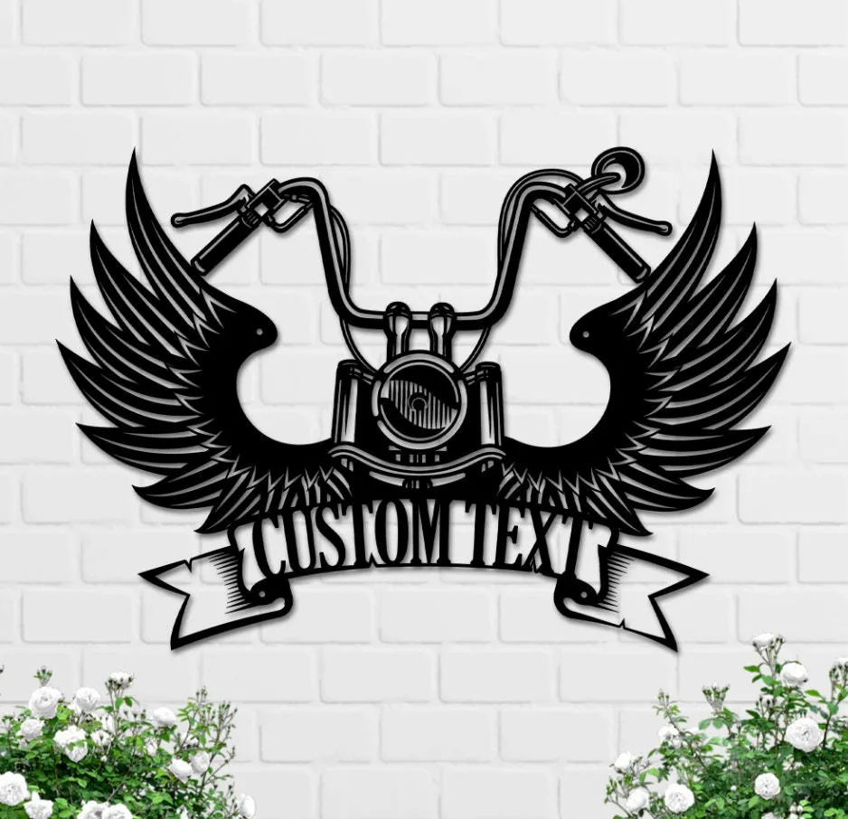 Custom Wings Motocross Metal Wall Art, Personalized Motorcycle Memorial Biker Name Sign, Home Decor, Biker Loving Memory, Motocycle Metal Art
