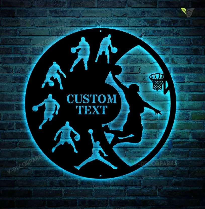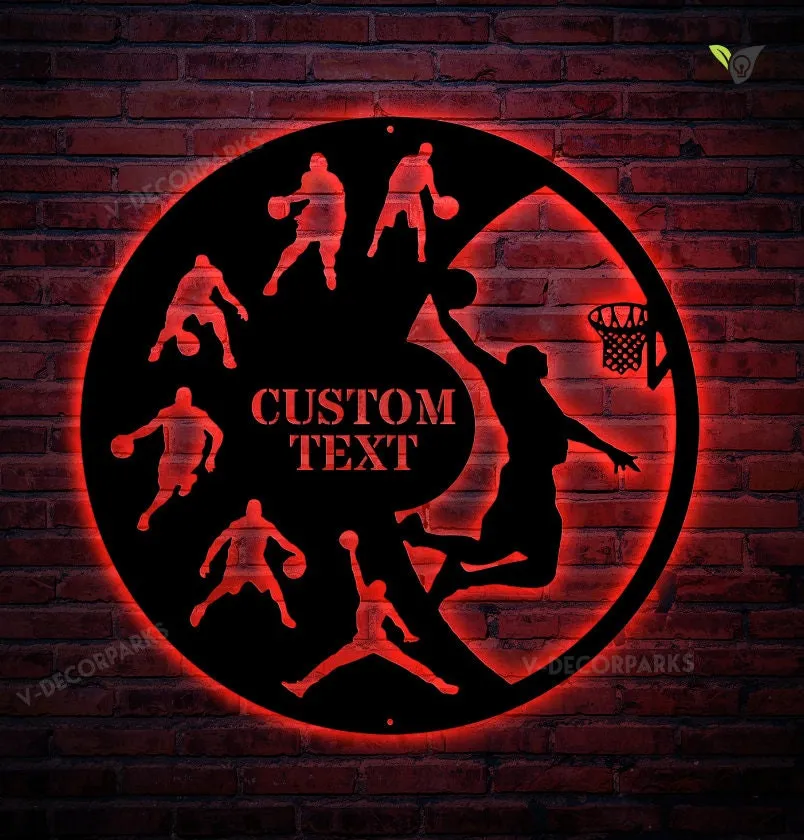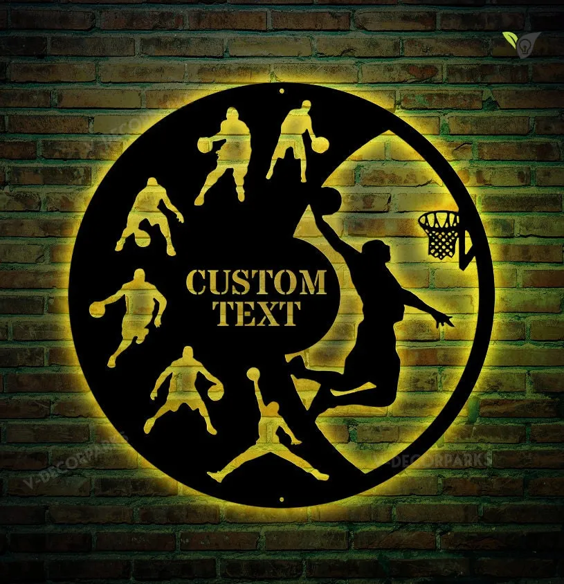 Customized Basketball Postures Metal Sign Led Lights, Custom Basketball Metal Wall Art, Basketball Unique Plaque, Christmas Gift