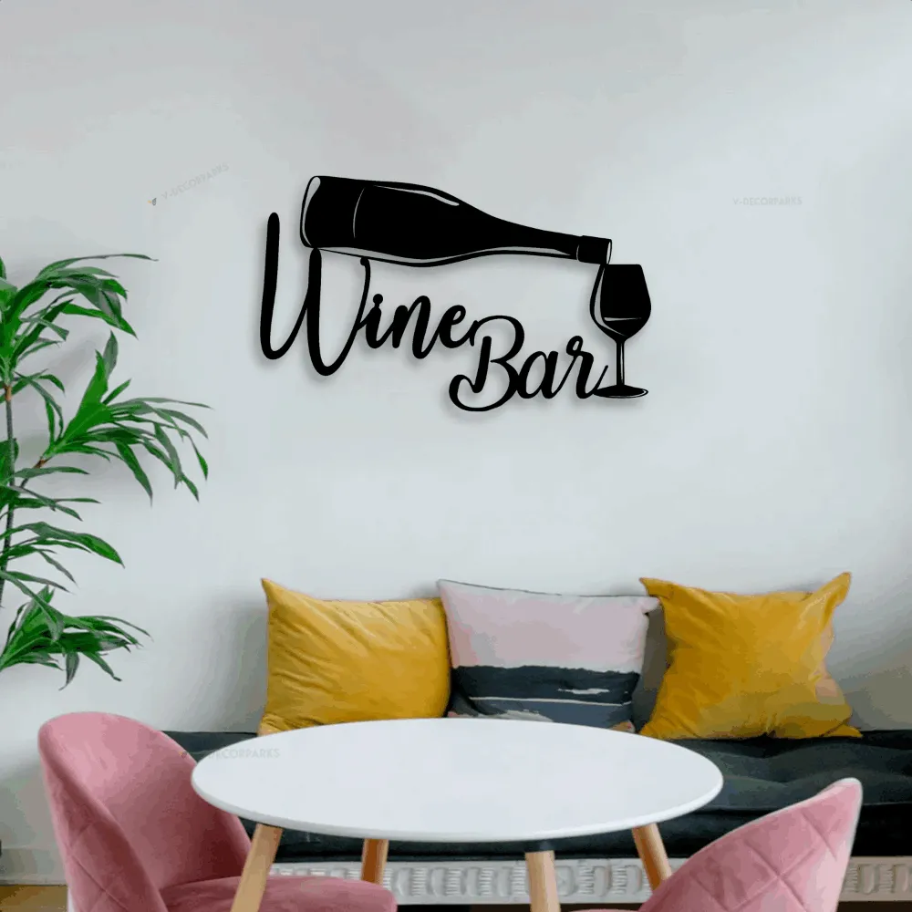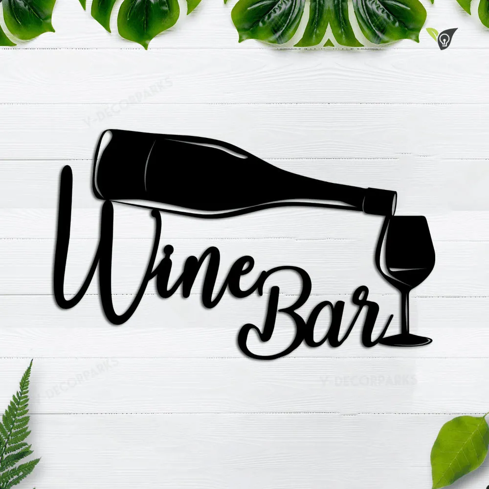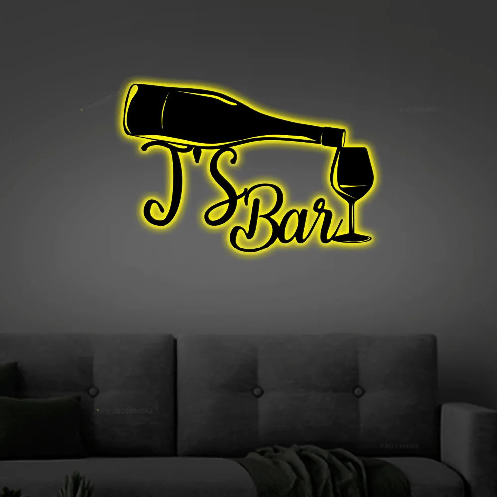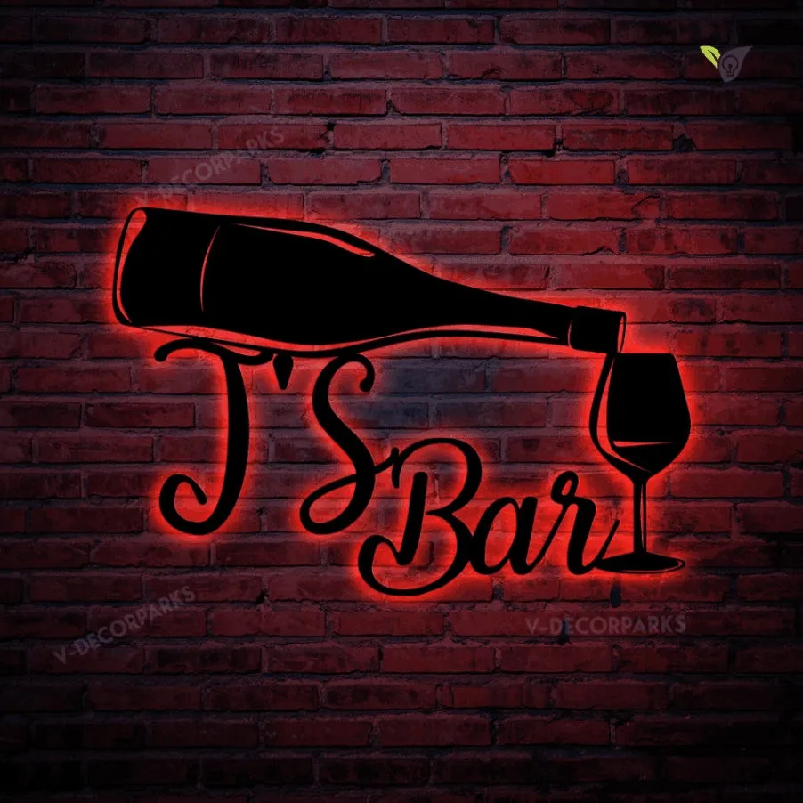 Customized Bottle And Glass Wine Metal Bar Sign With Led Lights, Steel Wall Hanging For Pub