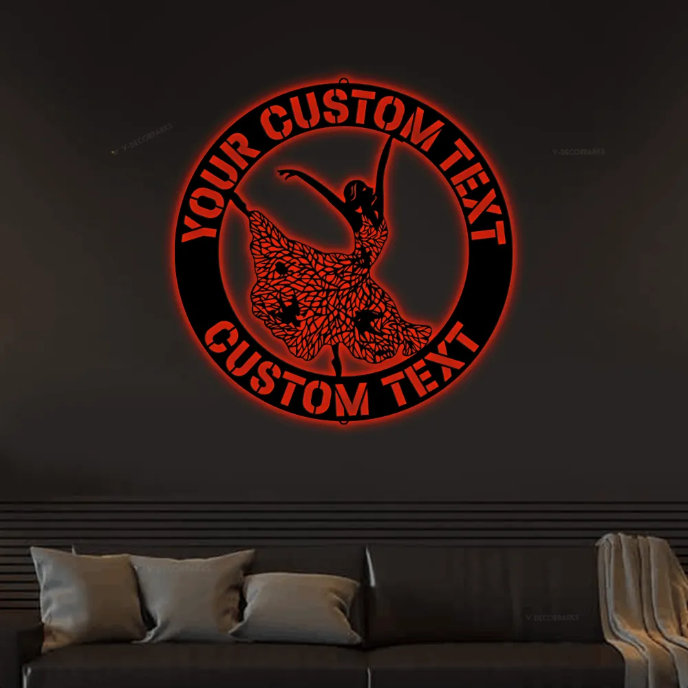 Customized Dancer Sign With Led Lights Monogram Steel Sign, Personalized Women Dancer Monogram Wall Art Home Decor Gift For Daughters