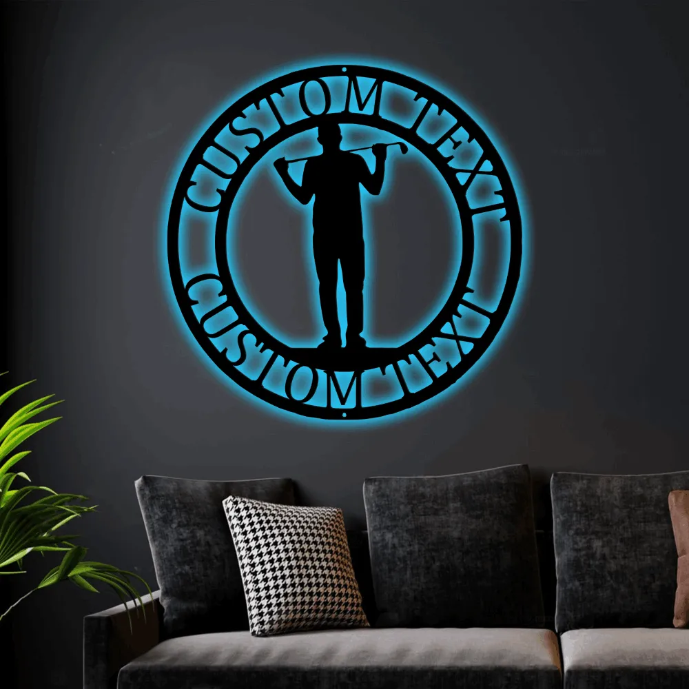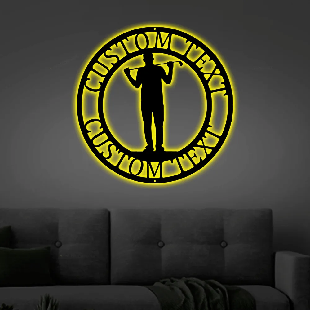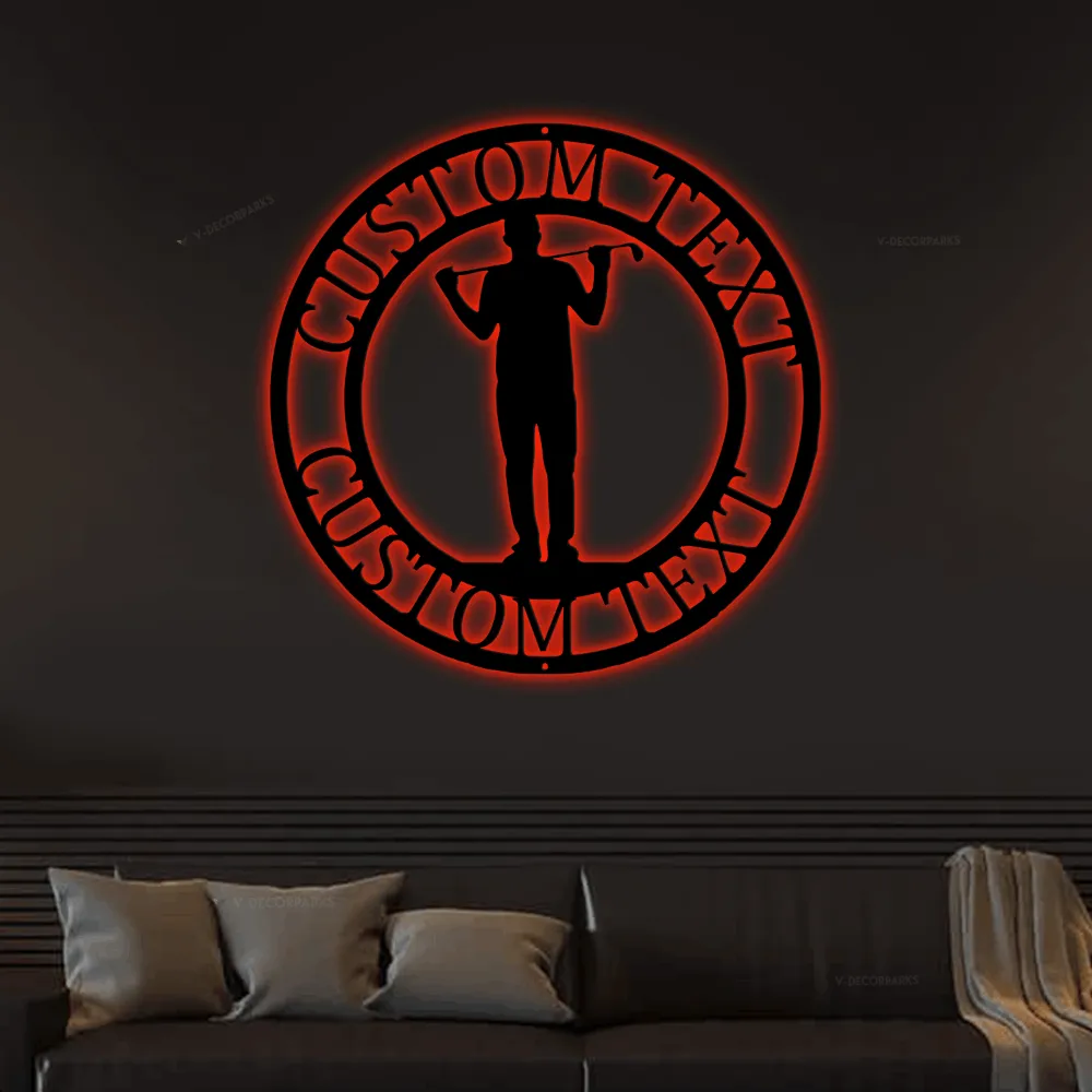 Customized Golfer Name Led Lights Sign, Monogram Steel Sign, Personalized Golfer Monogram Wall Art Dad Golfing Gift Home Wall Decor
